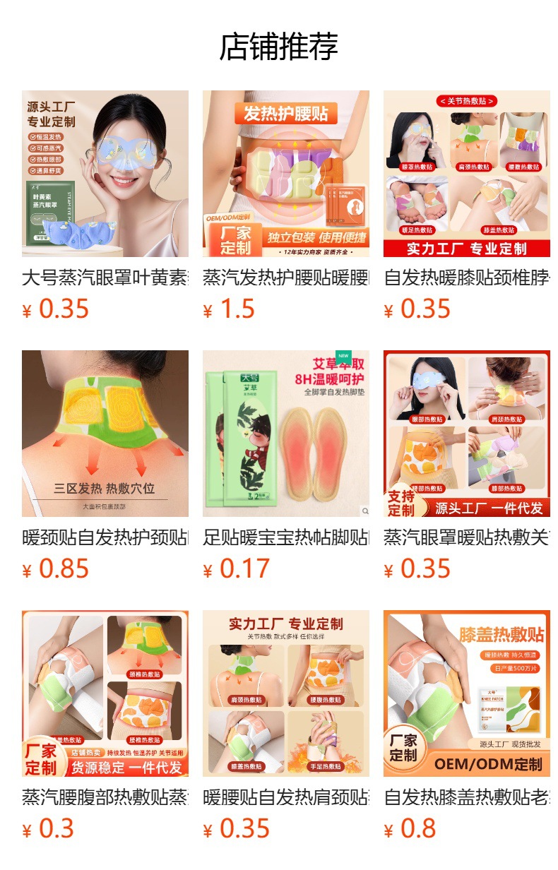 Улучшенный детский теплый; Японская большая теплая нашивка; Согревающий пластырь из пустырника; Согревающий пластырь из полыни; Нагревательный пластырь для талии и живота; Пластыри для ног (цена за штуку); горячий компресс на колено; Горячий компресс на плечи и шею; Носимая накладка для согрева рук (цена за единицу); Женские стельки с подогревом (цена единичная); Мужская обувь с подогревом стельки (цена за штуку); Паровая маска для глаз и носа; Мультяшная упаковка случайный теплый ребенок