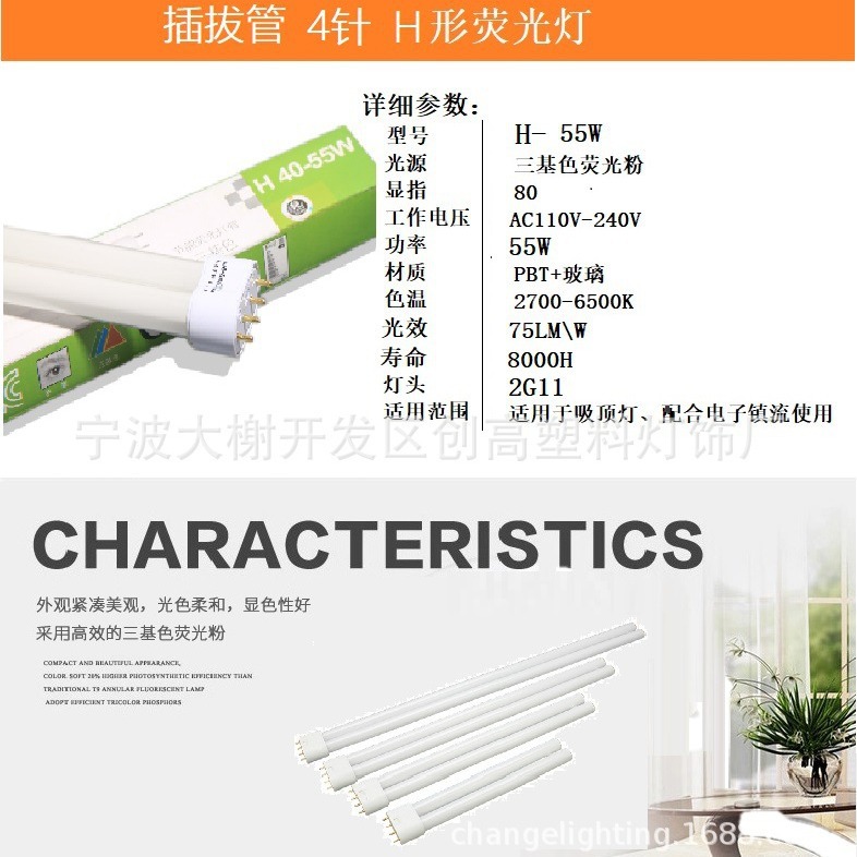 H55W 4-х плоская игольная H-образная люминесцентная лампа, три основных цвета, специальный смесительный порошок для потолочного светильника