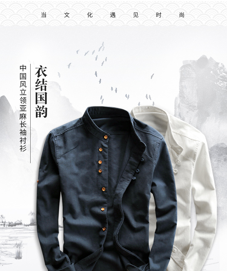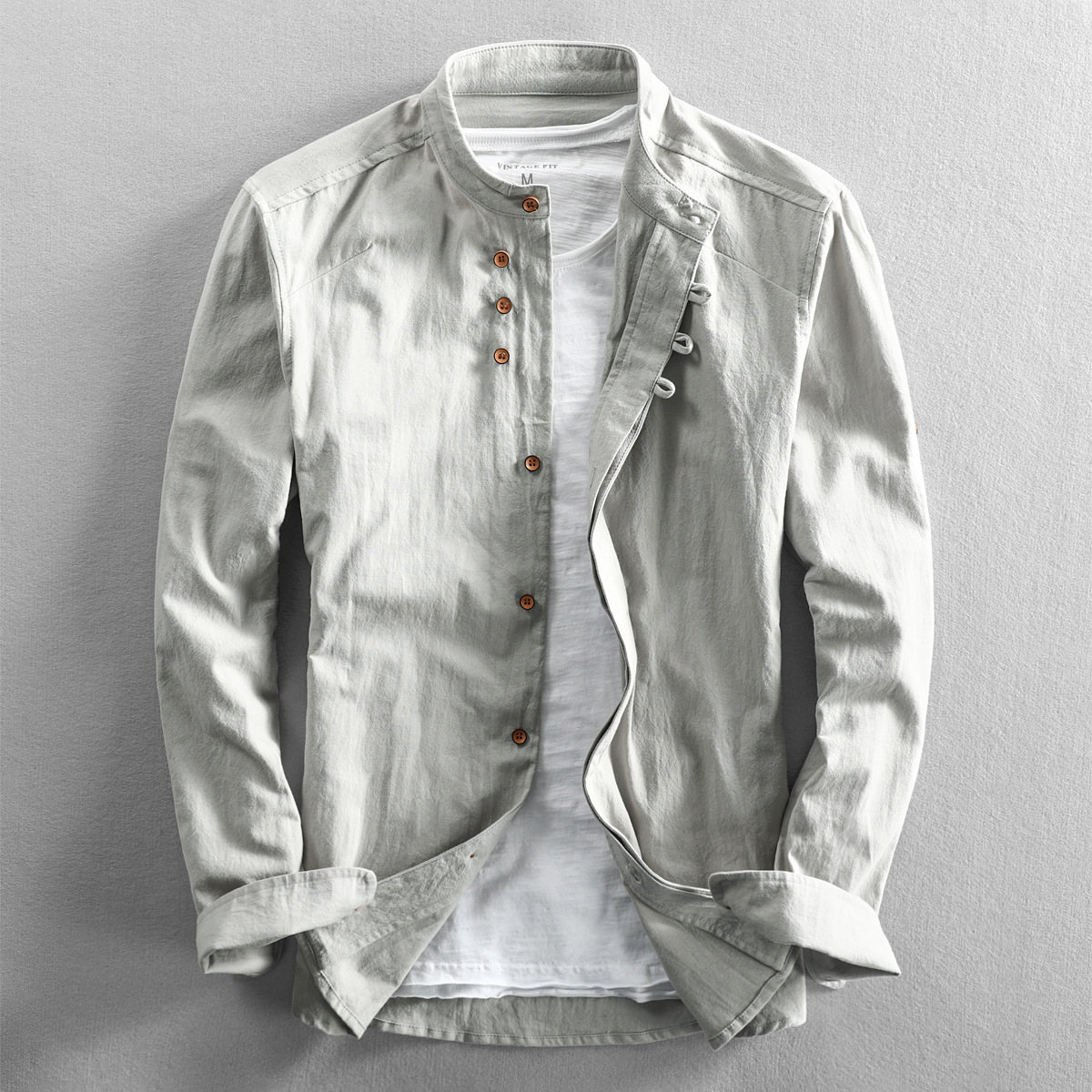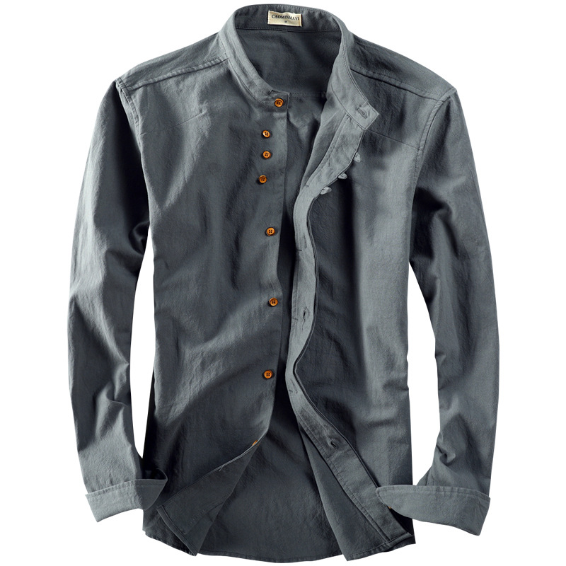 Весенняя новая мужская повседневная льняная рубашка, тонкая хлопково-льняная рубашка из хлопка и льна в китайском стиле в стиле ретро - Liangxiao