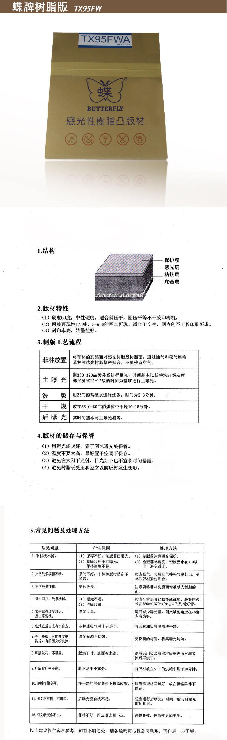 | 洗版 | 用25度的常温水进行洗版,时间为2-3分钟 |
