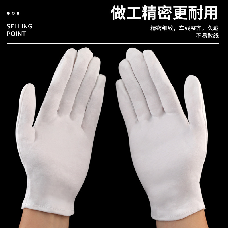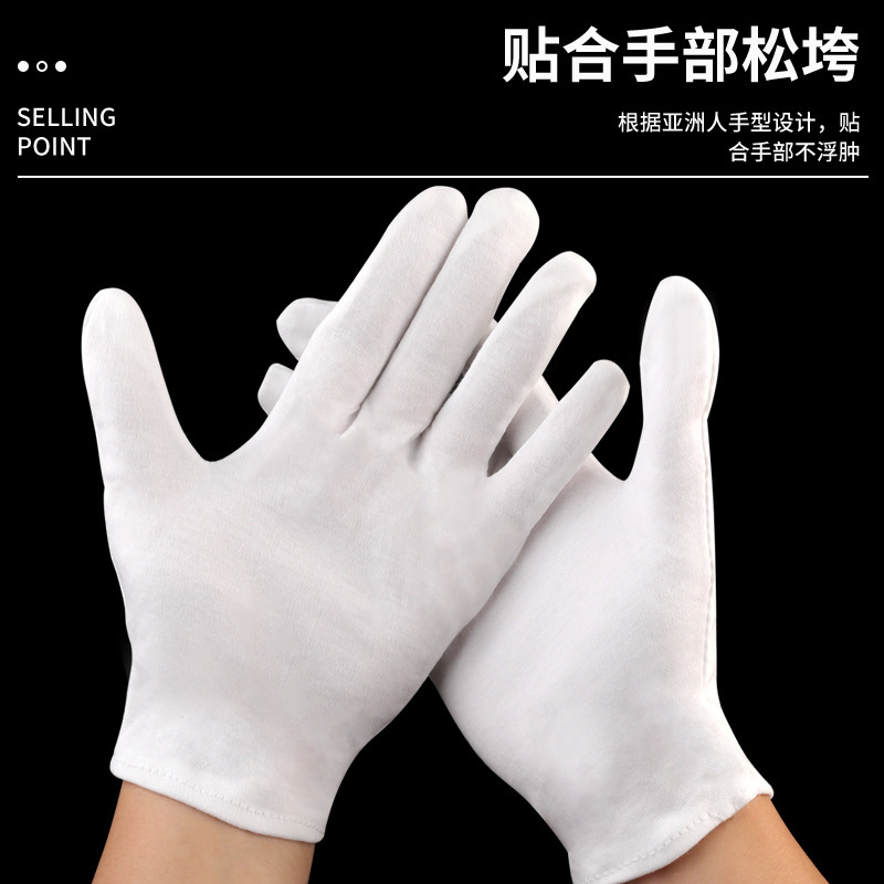 【产品颜色说明】:白色薄棉手套戴在手上能看得到肉,白色厚棉手套及以上戴在手上看不到肉