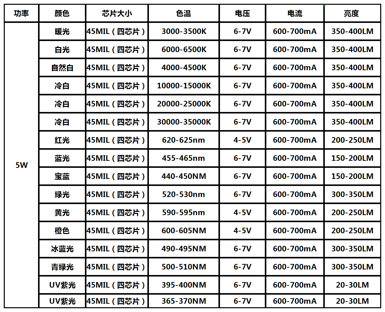 Белый свет мощностью 1 Вт с подложкой 20 мм.; Теплый свет мощностью 1 Вт с подложкой 20 мм.; Белый свет мощностью 3 Вт с подложкой 20 мм.; Теплый свет мощностью 3 Вт с подложкой 20 мм.; Естественный свет мощностью 3 Вт с алюминиевой подложкой 20 мм.; Белый свет мощностью 3 Вт (медный кронштейн) с пластиной; Теплый свет мощностью 3 Вт (медный кронштейн) с пластиной; Синий свет мощностью 1 Вт с пластиной; Синий свет 3 Вт с пластиной; Порошок полного спектра мощностью 1 Вт с пластиной; Порошок полного спектра мощностью 3 Вт; 1w1800K точечный порошок золотой свет с пластиной; Точечно-розовый золотой свет мощностью 3 Вт с пластиной; Зеленый свет 1 Вт с пластиной; Зеленый свет 3 Вт с пластиной; 1 Вт красный свет 660 нм с пластиной; 3Вт красный свет 660НМ с пластиной; 1Вт красный свет с пластиной 620НМ; Красный свет 3Вт с пластиной 620НМ; 3Вт UV395-400 с платой; 3WUV 365-370NM с платой; 3W*1WRGB шестиконтактный 30MIL с платой; 3W*3WRGB шестиконтактный 45MIL с платой; 12 Вт (3*4 Вт) RGBW с платой; 1 Вт УФ с платой 395-400 Нм; 3W850NM с платой; 1W4000K с подложкой 20 мм; 3 Вт (медный кронштейн) 4000К с подложкой 20 мм.; Поясная пластина с точечным розовым ледяным синим мощностью 1 Вт; 3Вт оранжевый с тарелкой; Желтая лампа мощностью 1 Вт с пластиной; Двухъядерный белый свет мощностью 5 Вт с пластиной; Двухъядерный теплый свет мощностью 5 Вт с пластиной; Двухъядерный красный свет мощностью 5 Вт с пластиной; Двухъядерный синий свет мощностью 5 Вт с пластиной; Двухъядерный зеленый свет мощностью 5 Вт с пластиной; Двойной желтый свет мощностью 5 Вт с пластиной; Двухжильный оранжевый цвет мощностью 5 Вт с пластиной; Двухъядерный ледяной синий свет мощностью 5 Вт с пластиной; Двухъядерный фиолетовый свет мощностью 5 Вт 395 с платой; Двухъядерный мощность 5 Вт 420 с платой; Четырехжильный белый свет мощностью 5 Вт с пластиной; Четырехжильный теплый свет мощностью 5 Вт с пластиной; Четырехжильный красный свет мощностью 5 Вт с пластиной; Четырехжильный зеленый свет мощностью 5 Вт с пластиной; Четырехжильный желтый свет мощностью 5 Вт с пластиной; Четырехжильный оранжевый 5 Вт с пластиной; Четырехжильный синий свет мощностью 5 Вт с пластиной; Четырехжильный UV395 мощностью 5 Вт с платой; Четырехжильный UV365 мощностью 5 Вт с платой