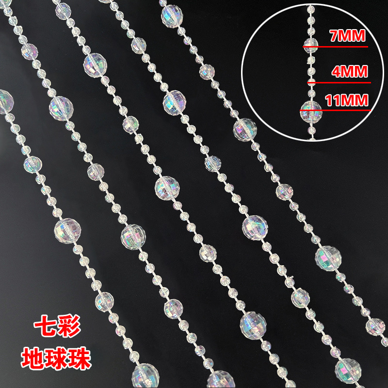 【商品说明】亚克力、仿水晶珠子,不脱色.珠子串是用亚克力材料浇铸成形在一根特制的线上,所以珠子不滑动,珠线为尼龙线,经久耐用,不易磨断