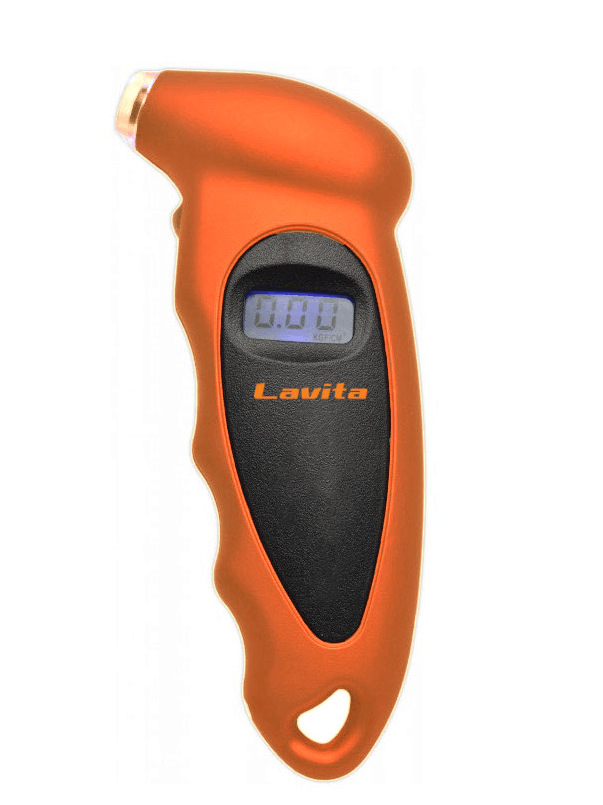 2、将测压嘴快速用力按入轮胎气门嘴,保持不漏气状态停一秒钟。拨出胎压计,读取数值。