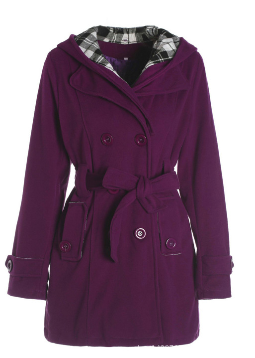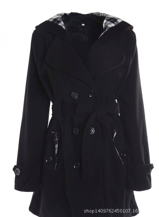 Новое шерстяное пальто в клетку с капюшоном и поясом, двубортное, длинное, 2024 года, для AliExpress, eBay, Amazon