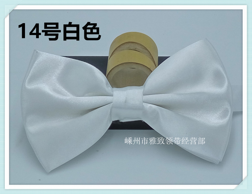 此款为新款纯色领结,佩戴简单方便,价格实惠,欢迎广大顾客采购。此款是塑料卡扣式领结,具体请看下图