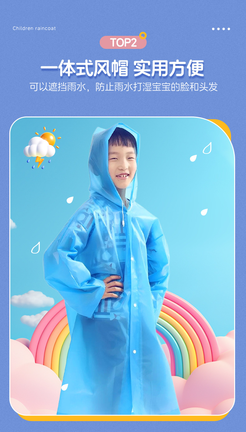 Детский дождевик из ЭВА, прозрачный, утолщенный, модный, одноразовый.