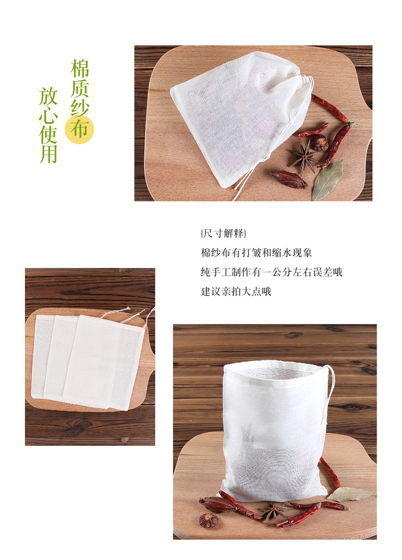 Сумка шлака сумки приправ сумки хлопка сумки супа 13 * 16км декоктинг сумка маринада сумки цедильного мешка китайской Медицины Сумка марли