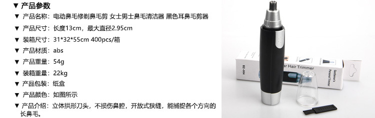 Электрическая машинка для стрижки волос в носу для женщин и мужчин, аккумуляторная машинка для чистки волос в носу, черный триммер для волос в ушах и носу, 54 г