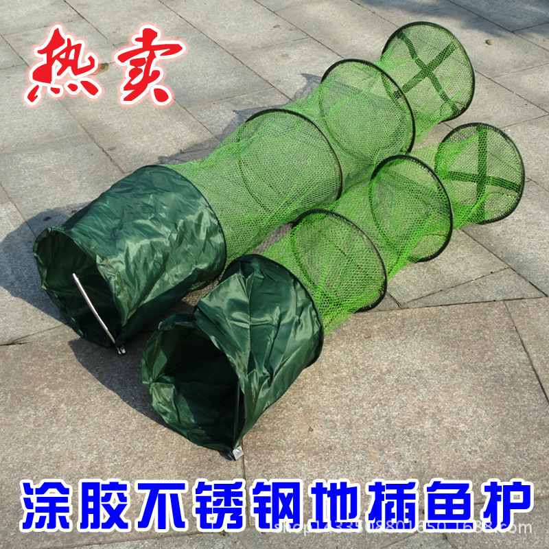 钢叉鱼护现分为两种布料,一种尼龙网布(结实,价格适中),一种为涂胶网布(不易挂鱼),两种材质外观差不多,下单时候请注意区分,以免拍错,谢谢。