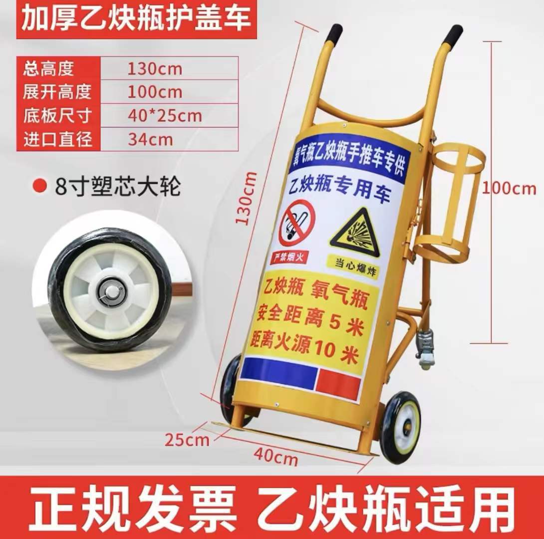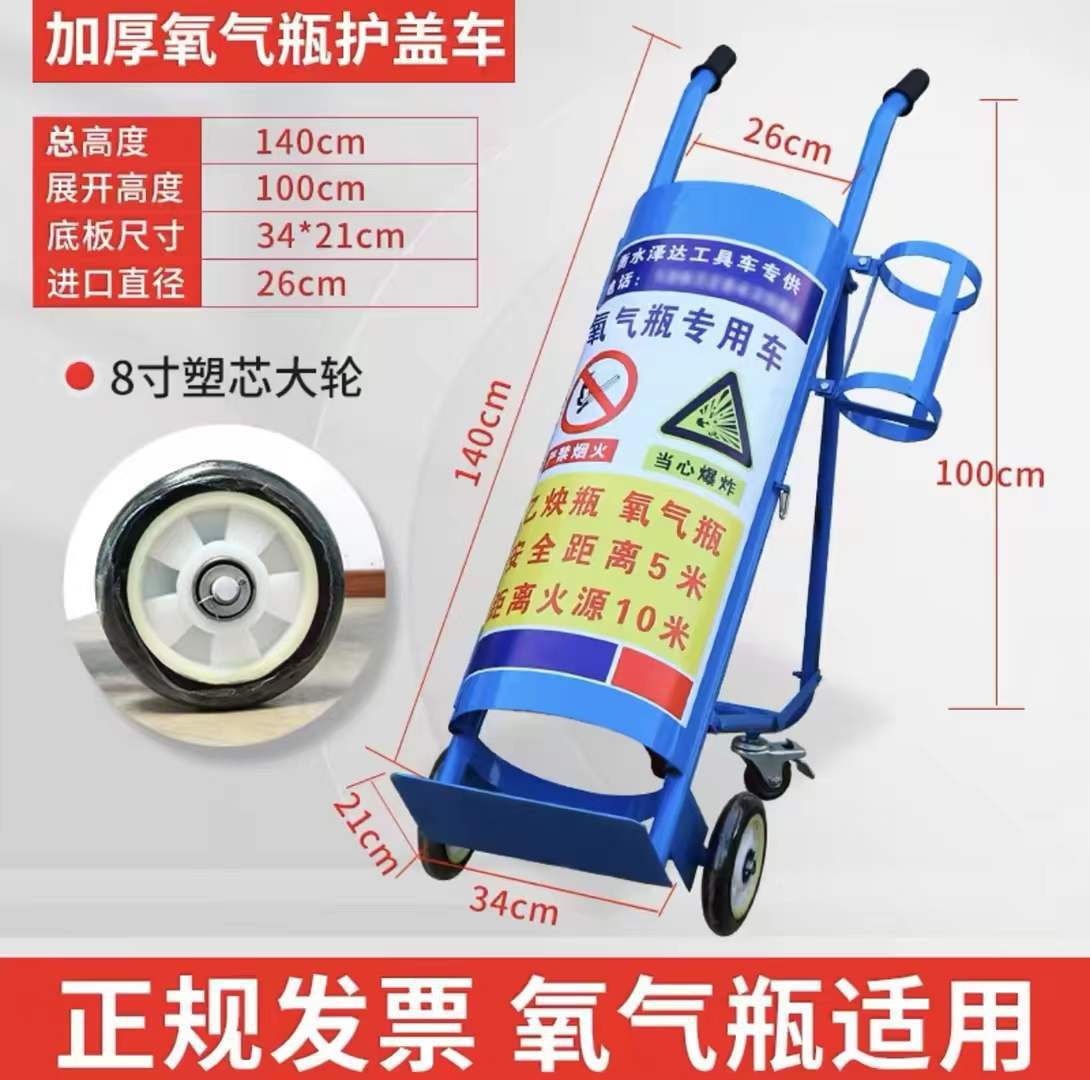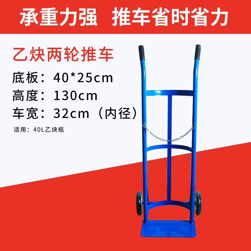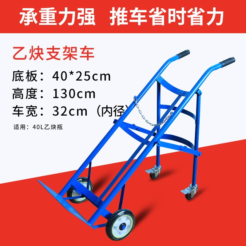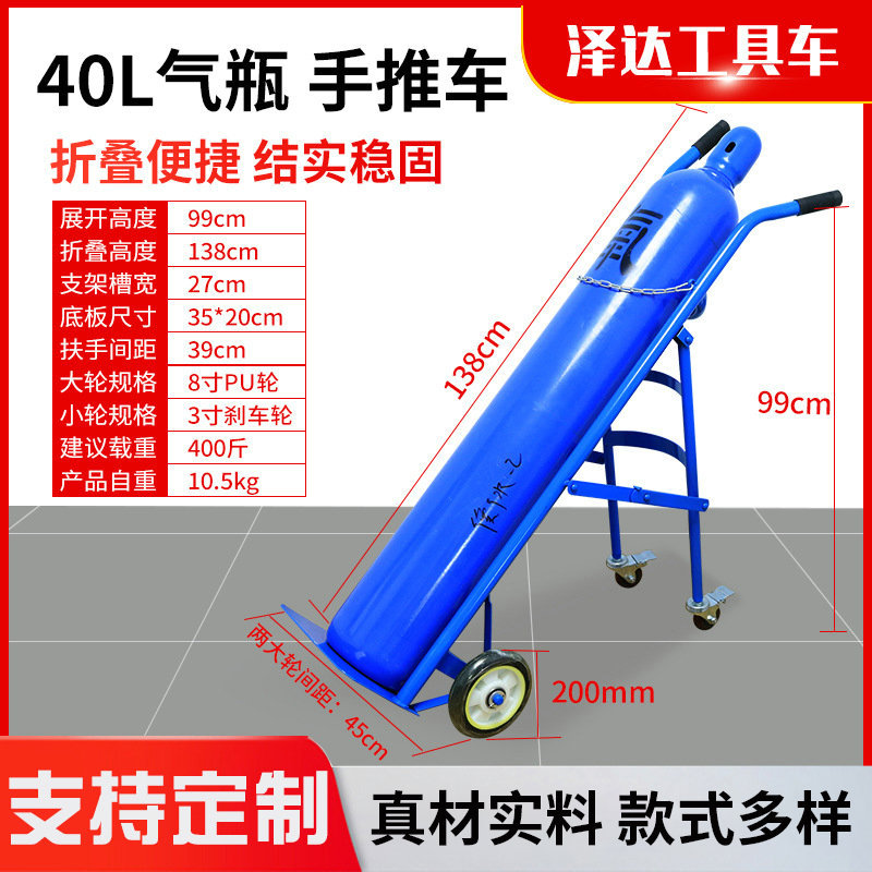 氧气瓶四轮手推车可折叠,使用起来方便易存储,适用于40L氧气/乙炔气瓶的搬运,整体焊接牢固可靠,无漏焊、焊瘤、焊疤、过烧、击穿等焊接缺陷。手推车配有防倒链条,长度可以调节,保证了气瓶搬运过程中的稳定。手推车有白色、蓝色、橘红色可选。