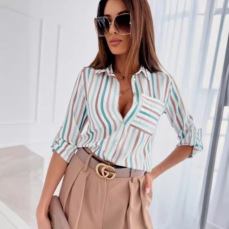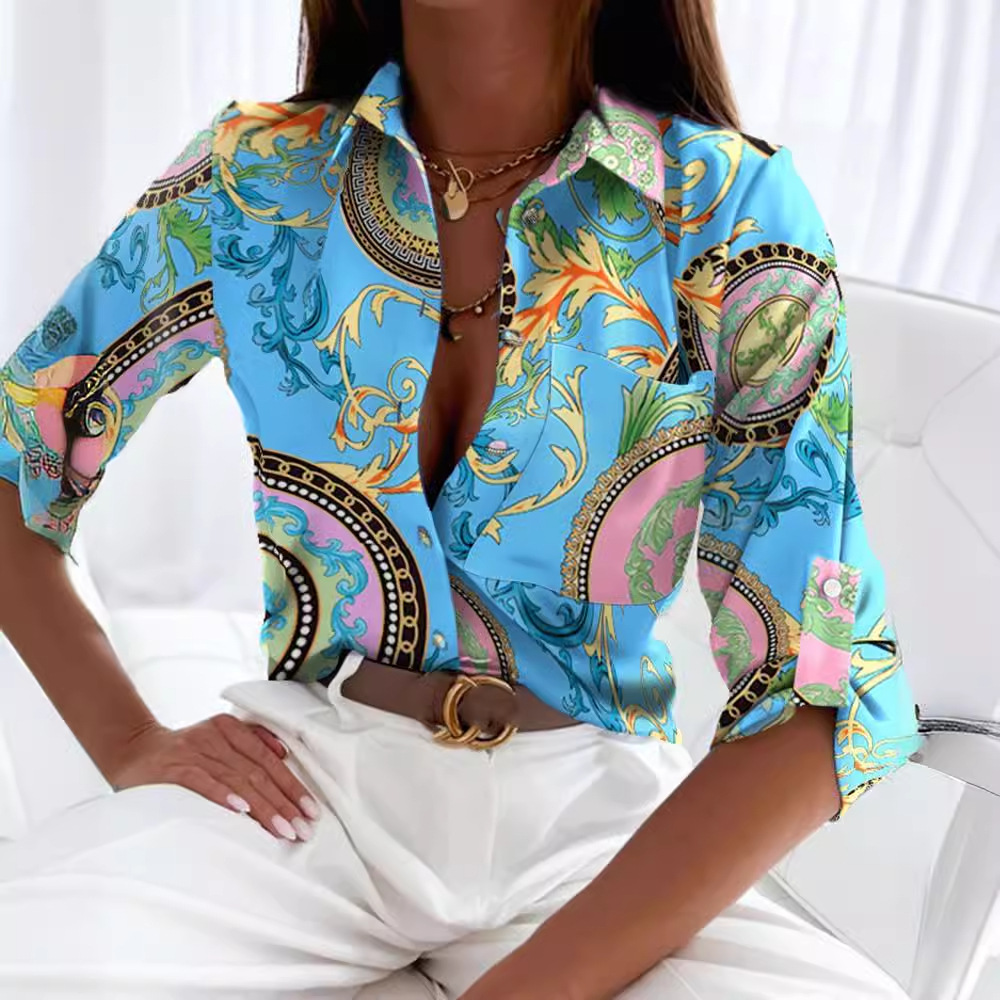 2023 Европейская и американская внешняя торговля Женская трансграничная весенне-осенняя куртка Independent Station Amazon Рубашка с длинным рукавом Рубашка с принтом Женская