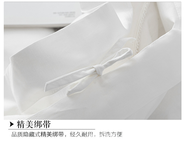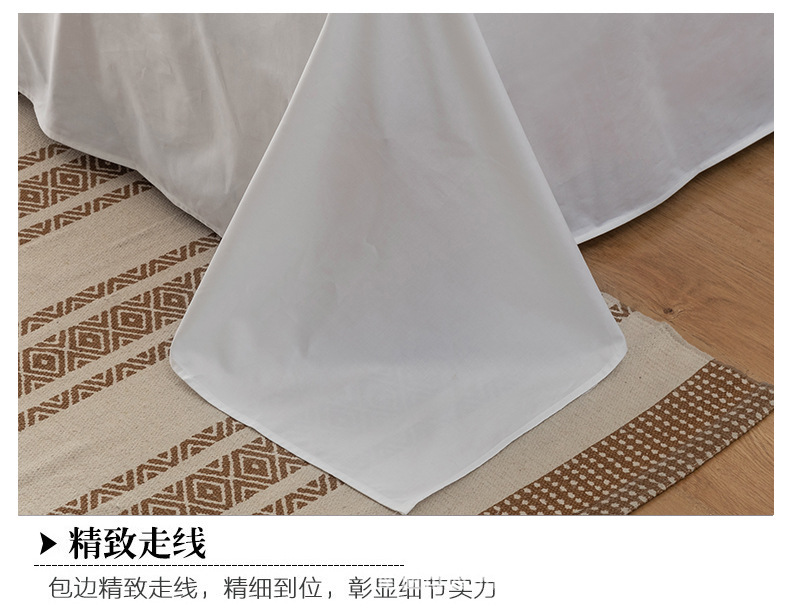 以上被套工艺为三周5cm飞边,被尾系带式中开口,床单四周1cm卷边,枕套信封枕