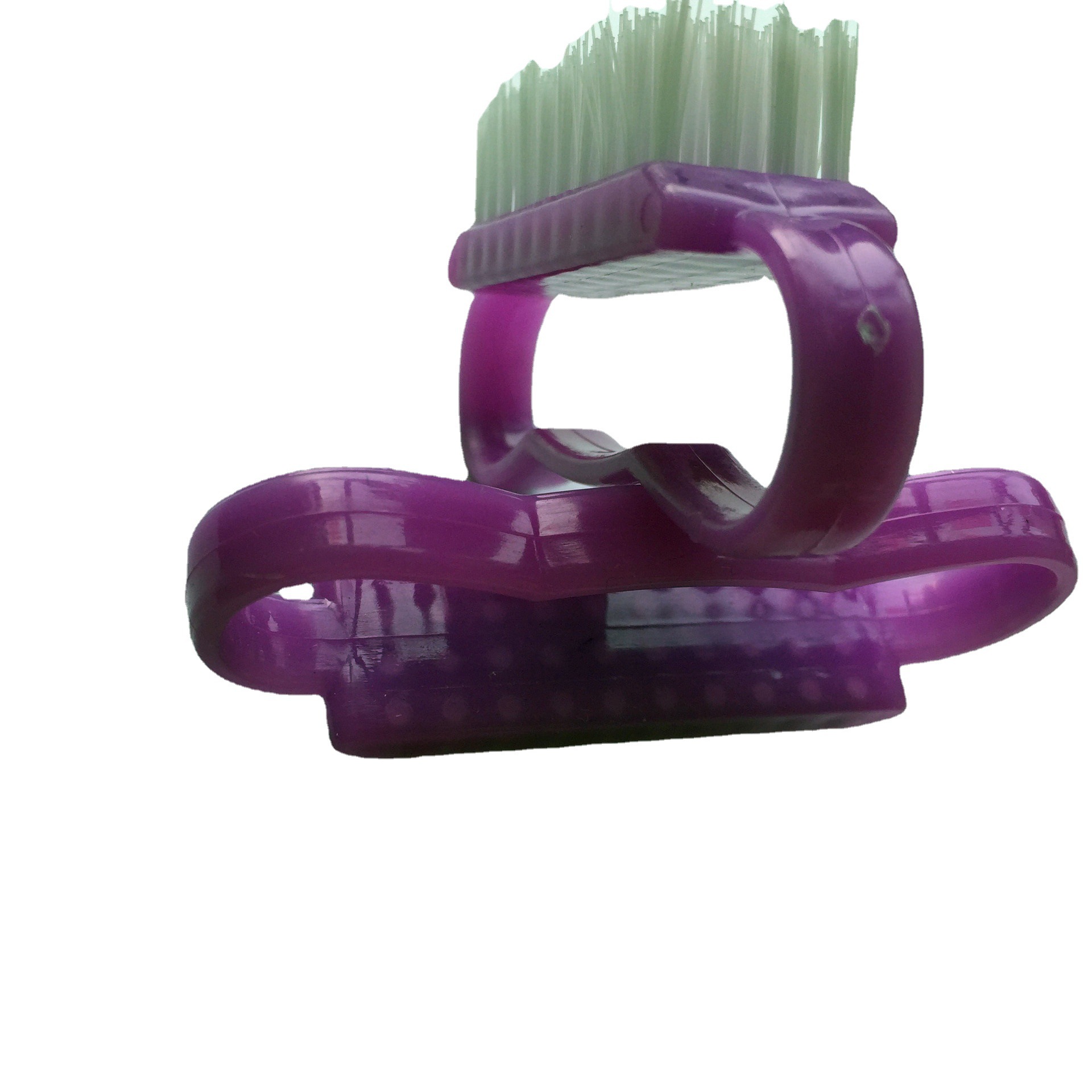 指甲刷的设计符合人体工学,能轻松的环扣在手指上,方便使用