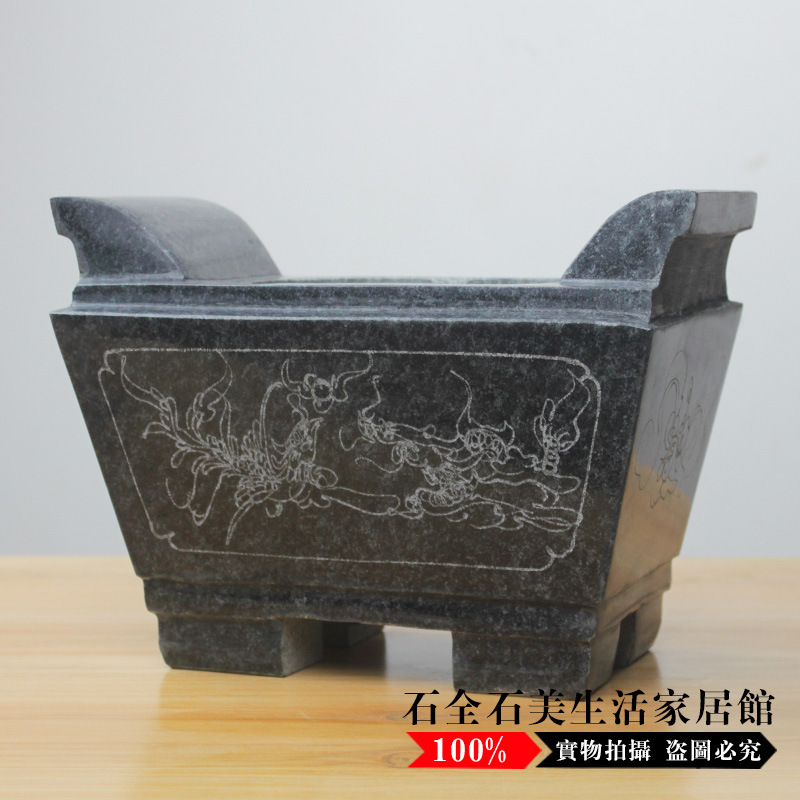 Каменная кадильница, благоприятная и способствующая исполнению желаний, из голубистого камня, длиной 20 см, храмовая кадильница, жертвенная кадильница, в древнем стиле для кладбищ.