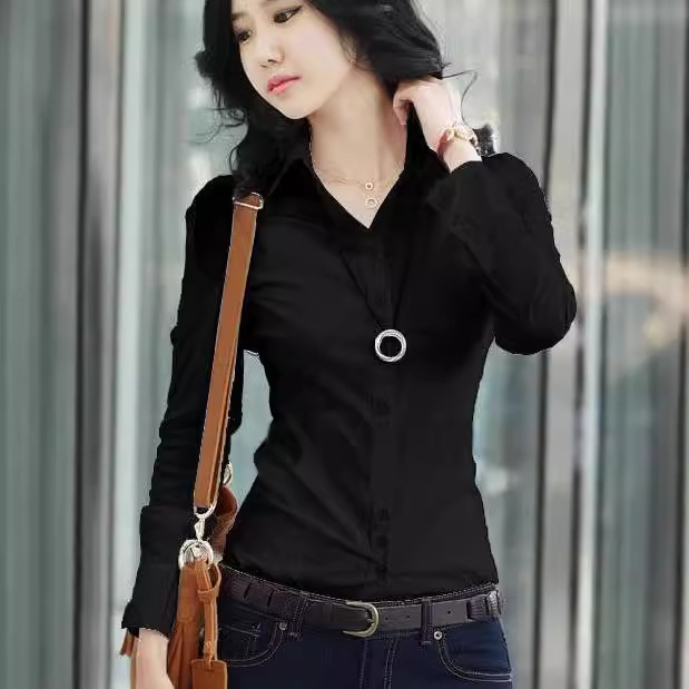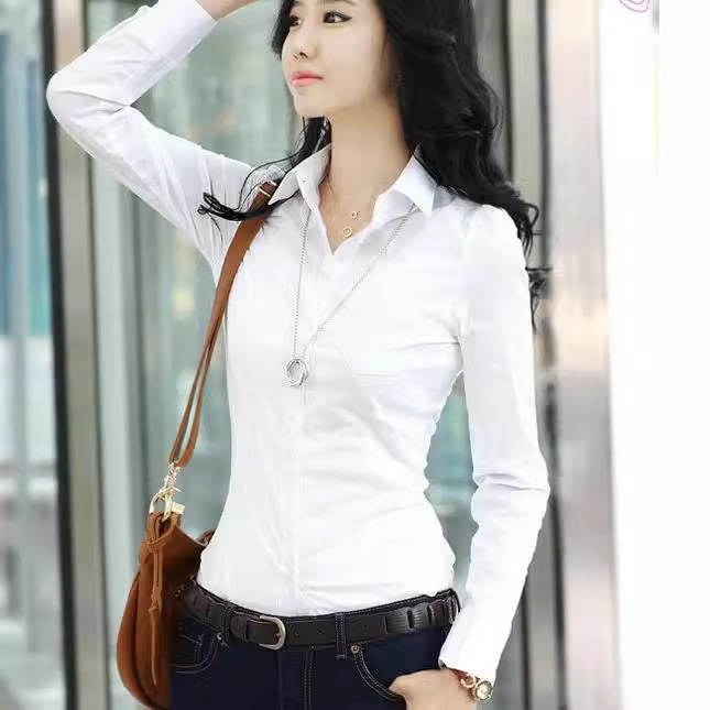 Весна и осень новая Деловая одежда комбинезоны белая рубашка Женская Базовая рубашка с длинными рукавами корейский стиль приталенный Плюс Размер Женская 2018 модная