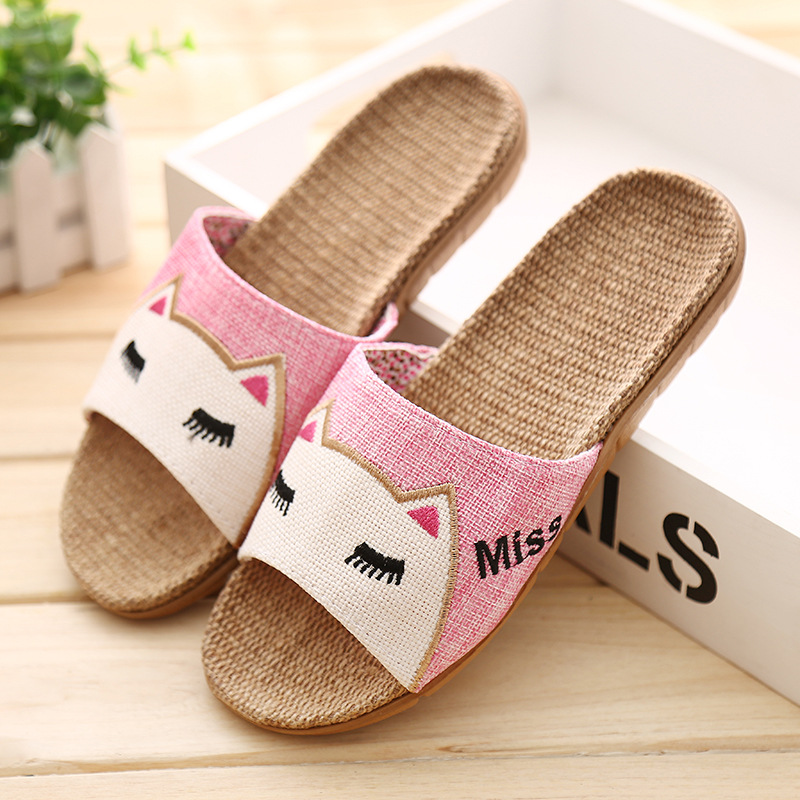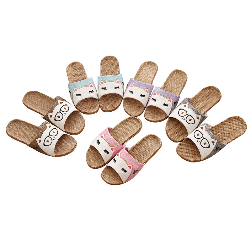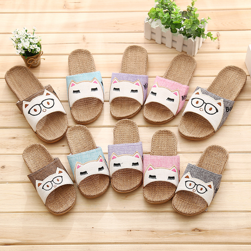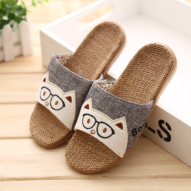 Трансграничные Мультяшные домашние женские мужские пары с одним словом, льняные массажные тапочки с совой, летние домашние сандалии из этиленвинилацетата
