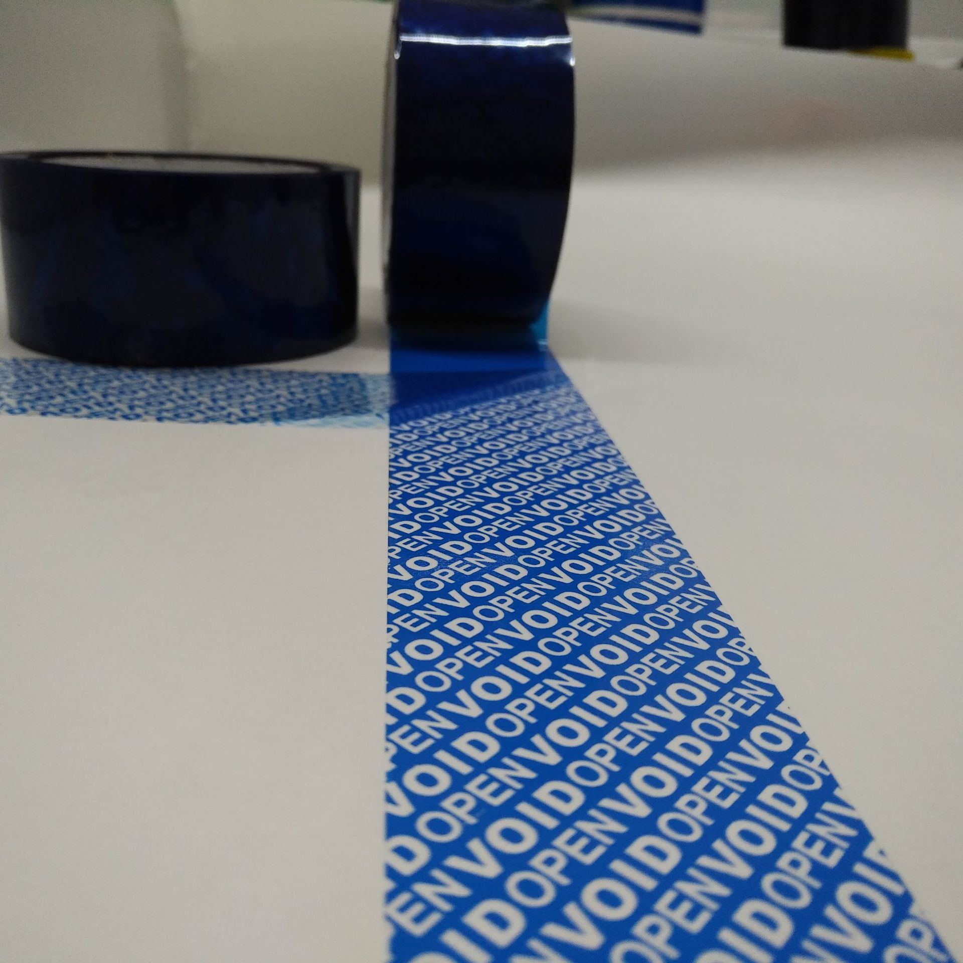 防伪胶带,也叫防撕胶带,俗称保密胶带以PET为基材,在PET反面经特殊工艺加工形成一种字模(通常的字模有“VOID”、“OPENED”、已开封 或客户指定的专版),当标签从承贴物表面撕起时,预先设定的字模或图案将会完整地留在承贴物表面,且无法复原