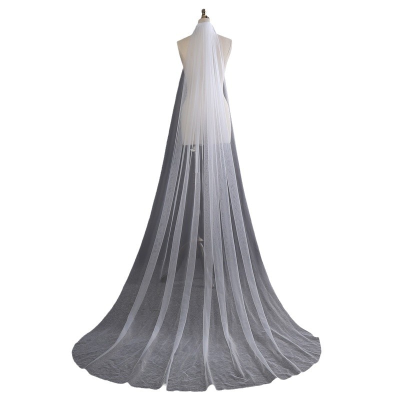 Длинная двухслойная фата из мягкого тюля в стиле катахедральный шлейф, длина 2м, свадебная фата с гребнем для волос.