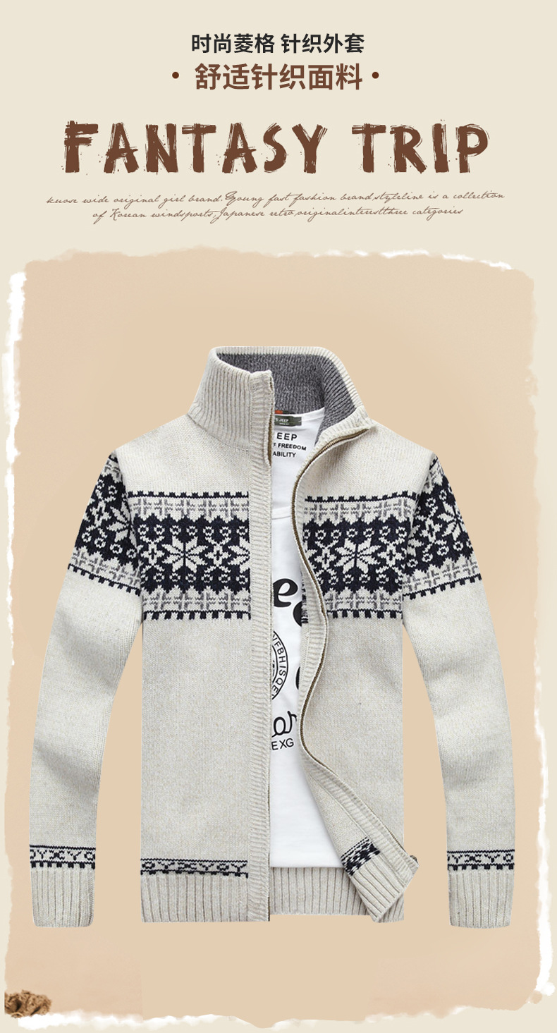 Вязаный кардиган, мужской зимний экспортный новый повседневный свитер на молнии для молодых и средних лет, модная мужская куртка с воротником-стойкой