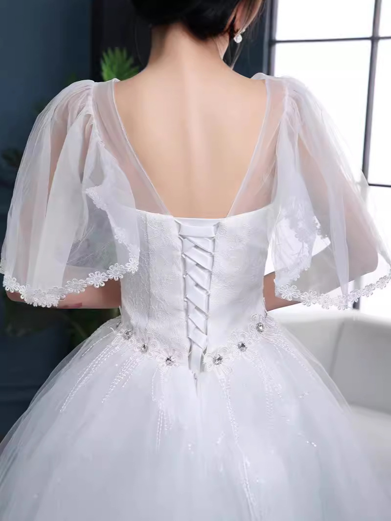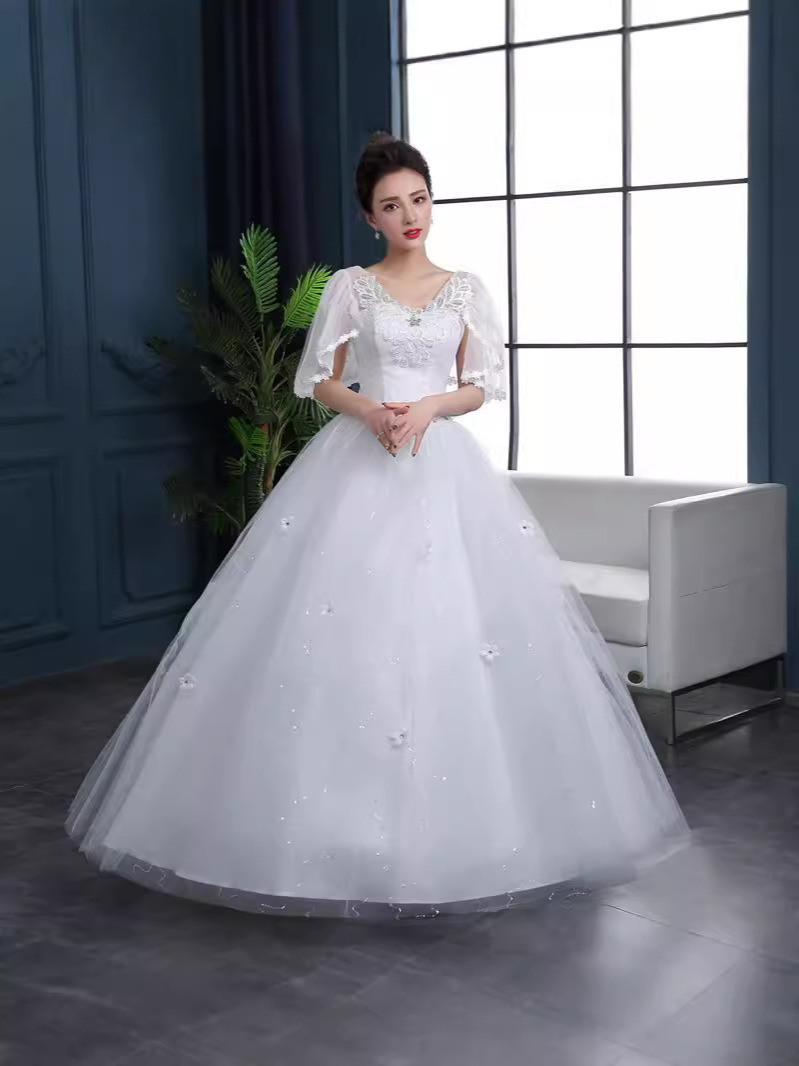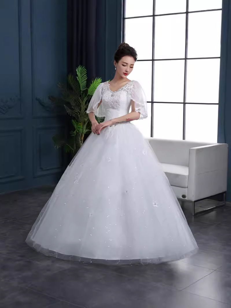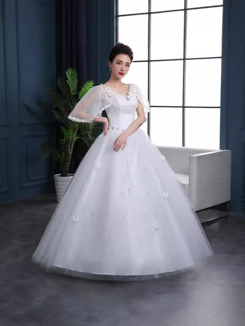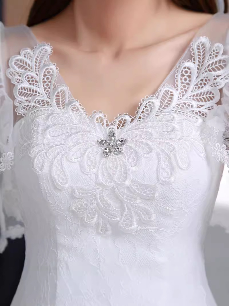 Свадебное платье 2021, лето и осень, новый стиль, вид для похудения, кружево со средними рукавами, большой размер, простое, на одно плечо, длиной до пола, для похудения