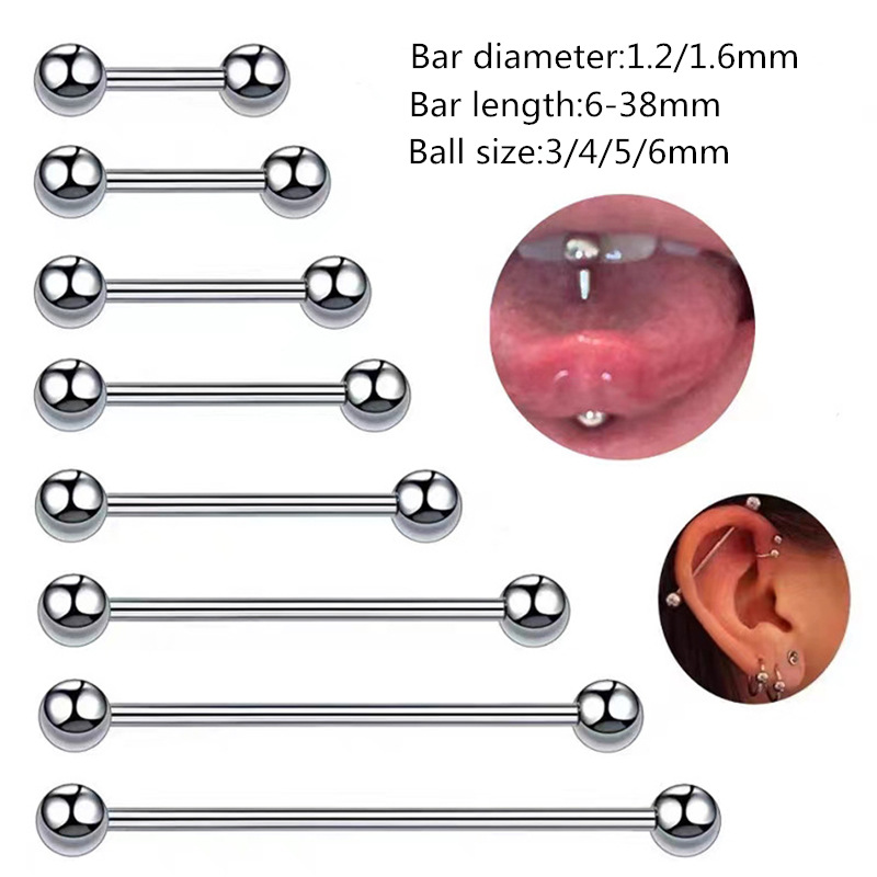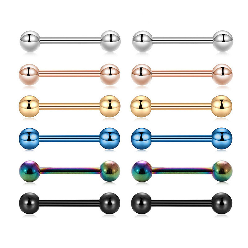 316钛钢长直杆舌钉跨境长杆哑铃圆球舌钉真空环保电镀彩色耳骨钉