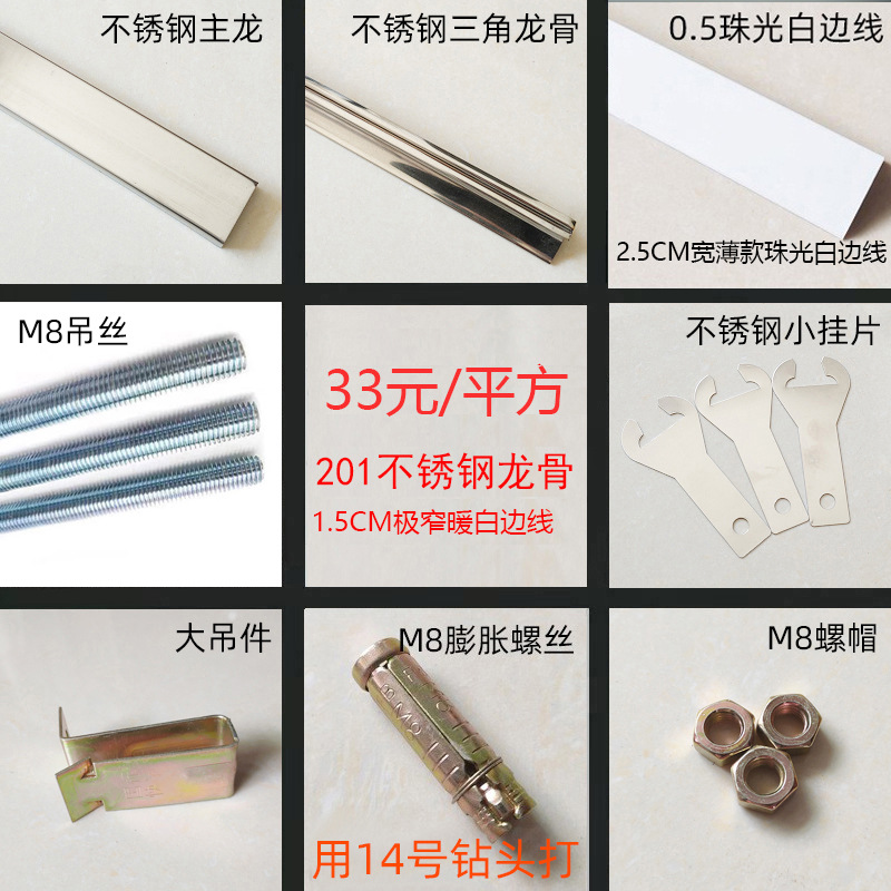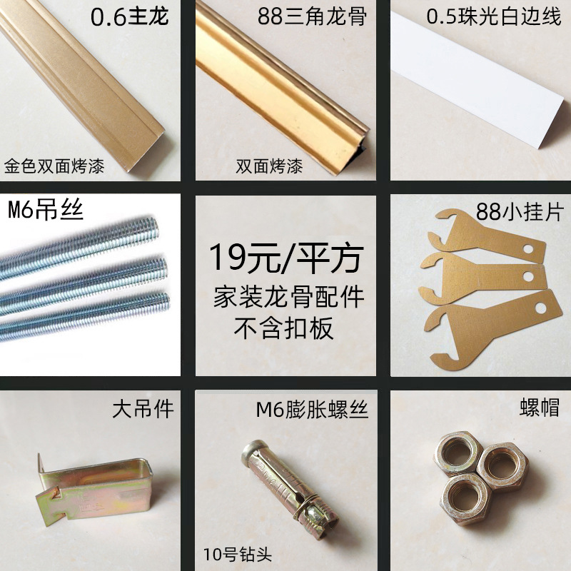 2、其它按平方计算的辅料配件均10平方起发,按实际面积平方数拍即可,提供长宽尺寸均根据实际情况配足并赠送损耗备用,如有多出结余不退货哦(吊顶高度默认50CM,很高的话需加购吊丝)。