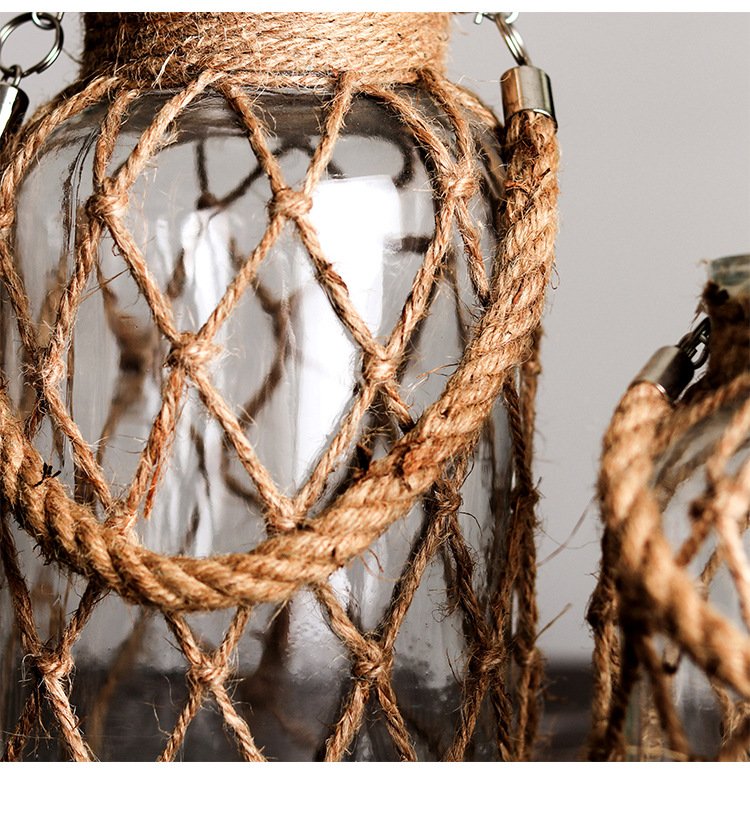 Стеклянная прозрачная ваза ручной работы из пеньковой веревки оптом американские декоративные украшения Цветочная креативная гидропонная винтажная ваза