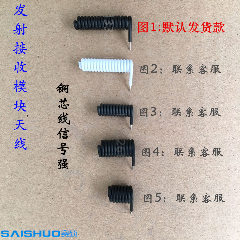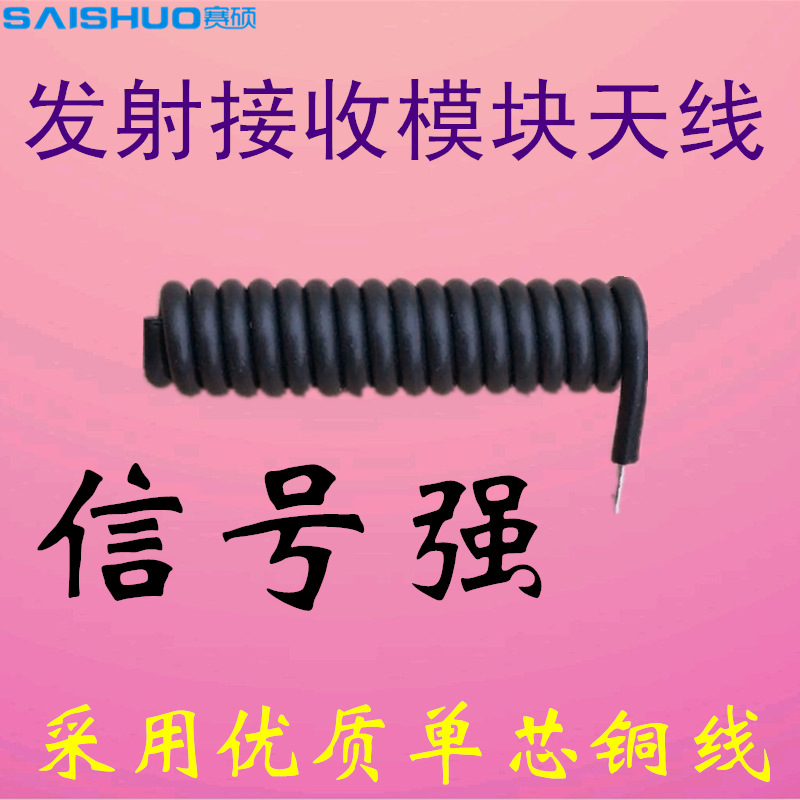 此天线拉直长度在25cm左右,绕好后外直径在6mm左右,一端剥锡3mm左右;铜线直径0.5mm 外径1.3mm,颜色一般为黑色,默认发货为黑色。(如需要白色请拍前说有并备注好)。一般接收模块和发射模块上面都可以使用,如果距离要求高,可以把天线拉直;(需要其它长度可订做,或其它直径可联系订做)厂家直销量大优惠!