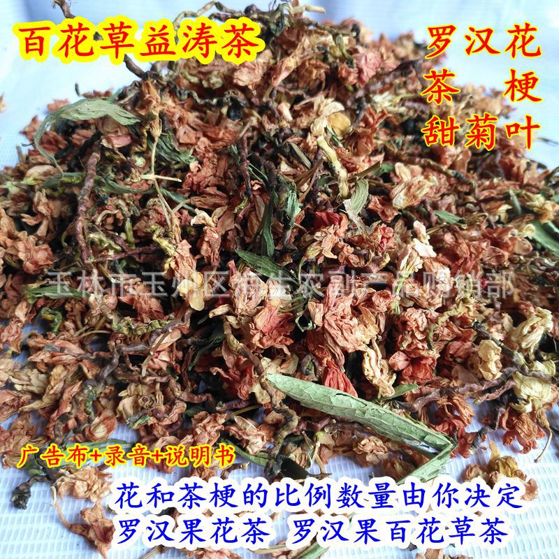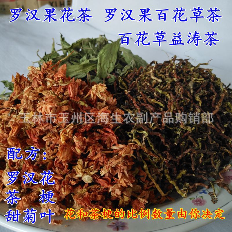 配方:茶梗+甜菊叶+罗汉花(红茉莉花),配方比例:甜叶用的是一级货全部是叶的好货,茶梗和花正常比例是各一半,真实比例拍前可以咨询本店,梗和花也可以按每位老板的比例配。本店配比绝对真实,可以把三种材料分开装,诚信为重,不会像某些商家,甜叶标的斤数与实际给客人的就不足量。