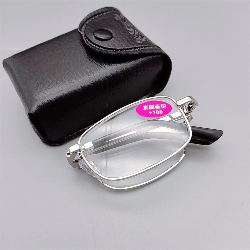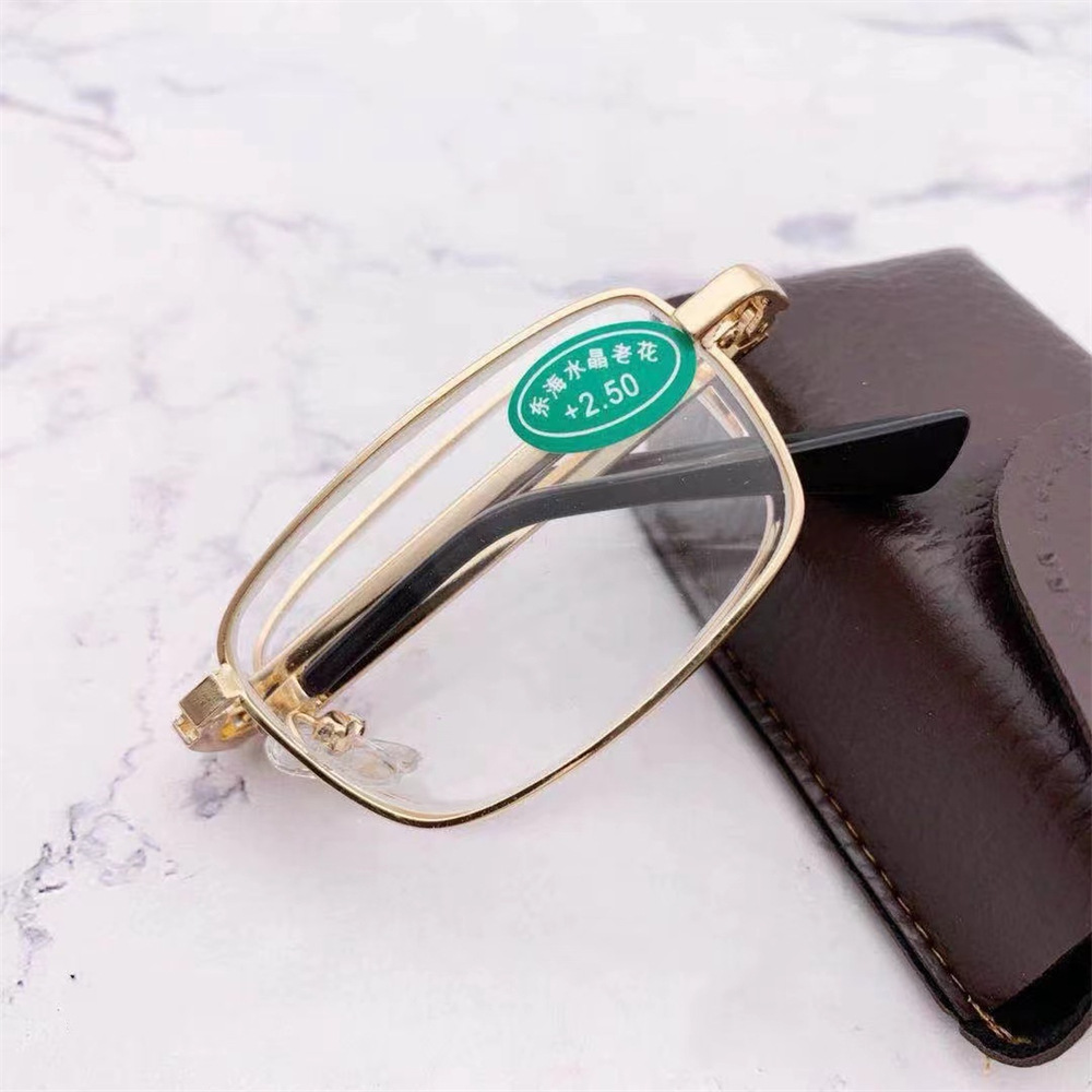 Оптовые стеклянные очки для чтения кожаная коробка складные очки для чтения имитация кристалла Восточного моря очки для чтения стойло горячая Распродажа электронной коммерции