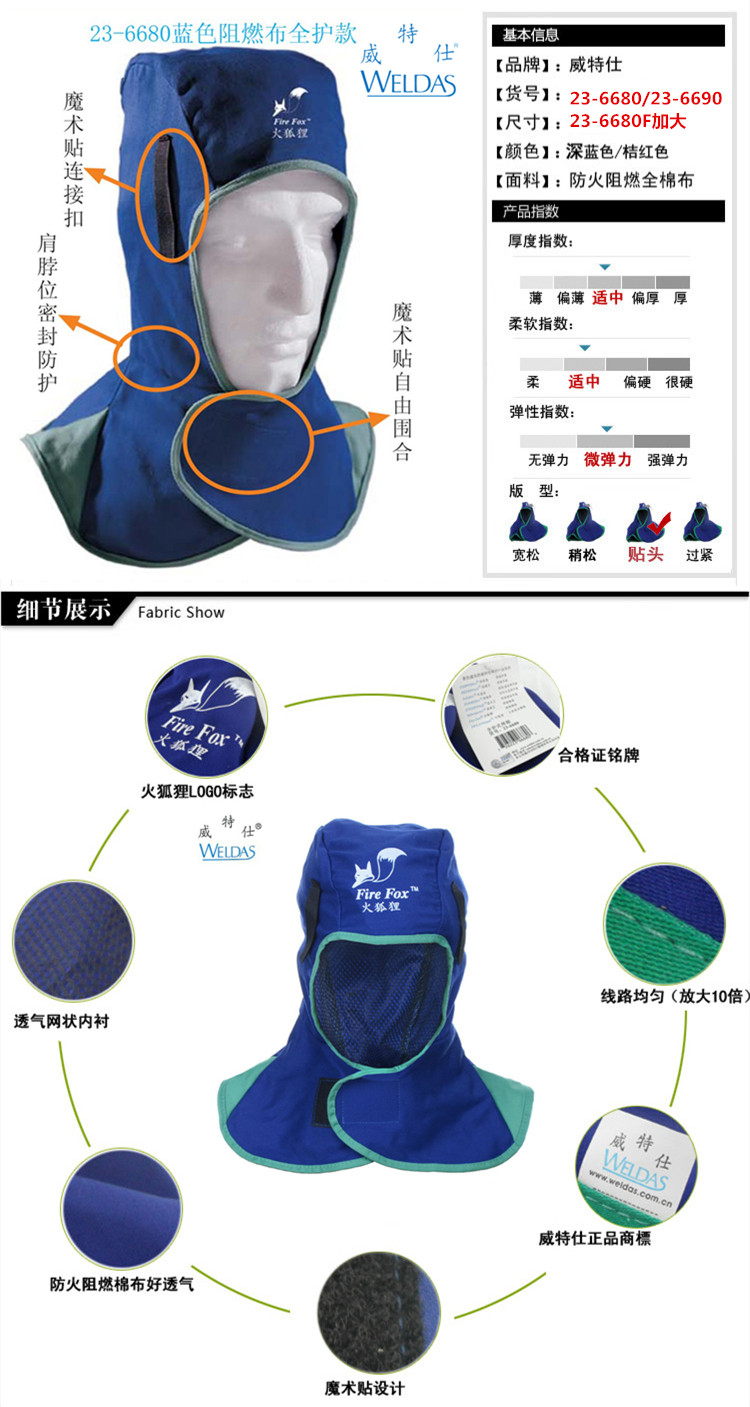 Wittes 23-6680 Fire Fox сварочный колпачок Капюшон шаль шляпа огнестойкий сварочный колпачок крышка головы легкий дышащий
