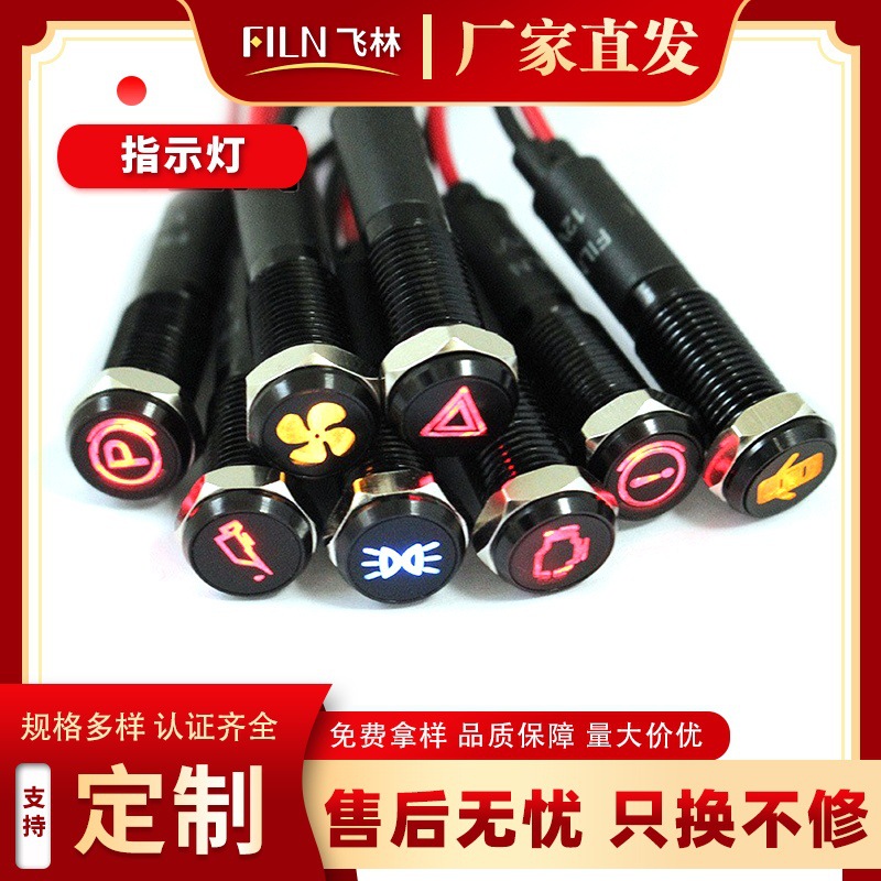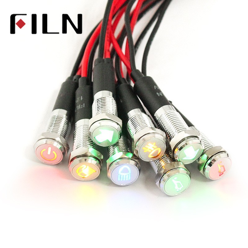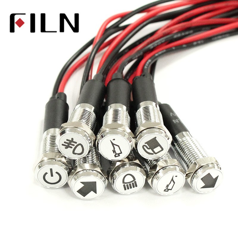 Светодиодный индикатор FILN8/10/12/14/16 мм, водонепроницаемый сигнальный индикатор 12В для автомобиля, символический индикатор