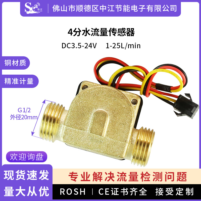 Датчик расхода воды Hall, 4-точечный медный расходомер для водонагревателя, считыватель карт DN15, расходомер воды с внешней резьбой G1/2, производитель