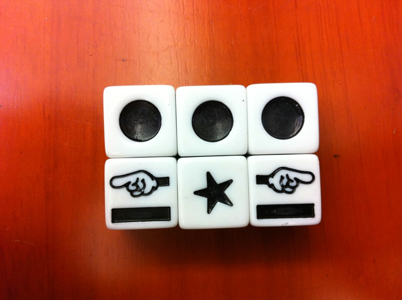 Pattern: three surface is a circle, one is a star, one is left, the last one is right