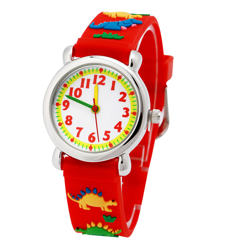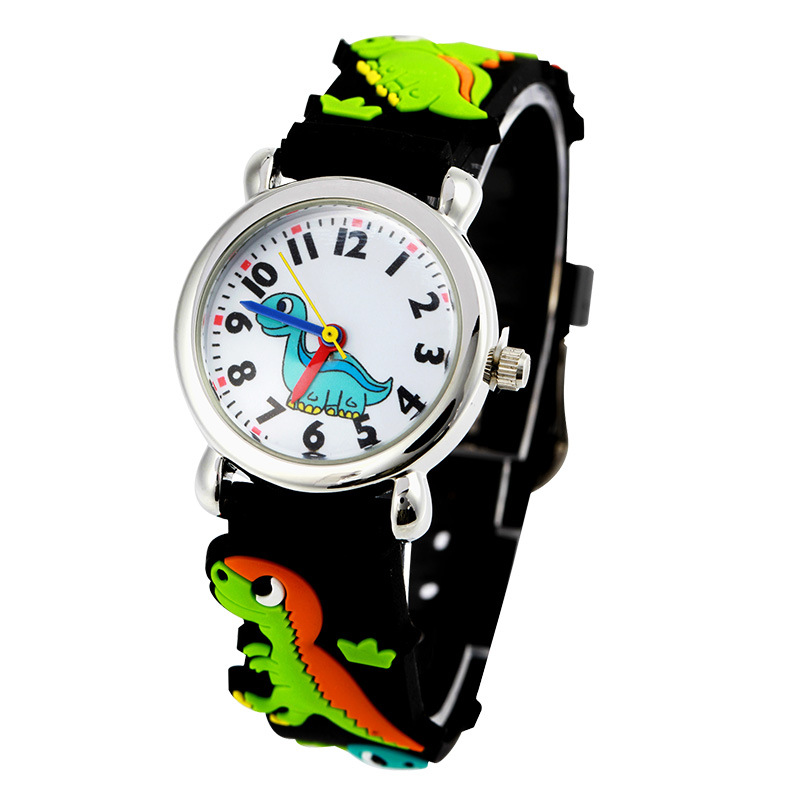 Детские часы с синим динозавром, кварцевые часы с мультяшным рисунком, круглые часы с указателем, милые водонепроницаемые часы для мальчиков