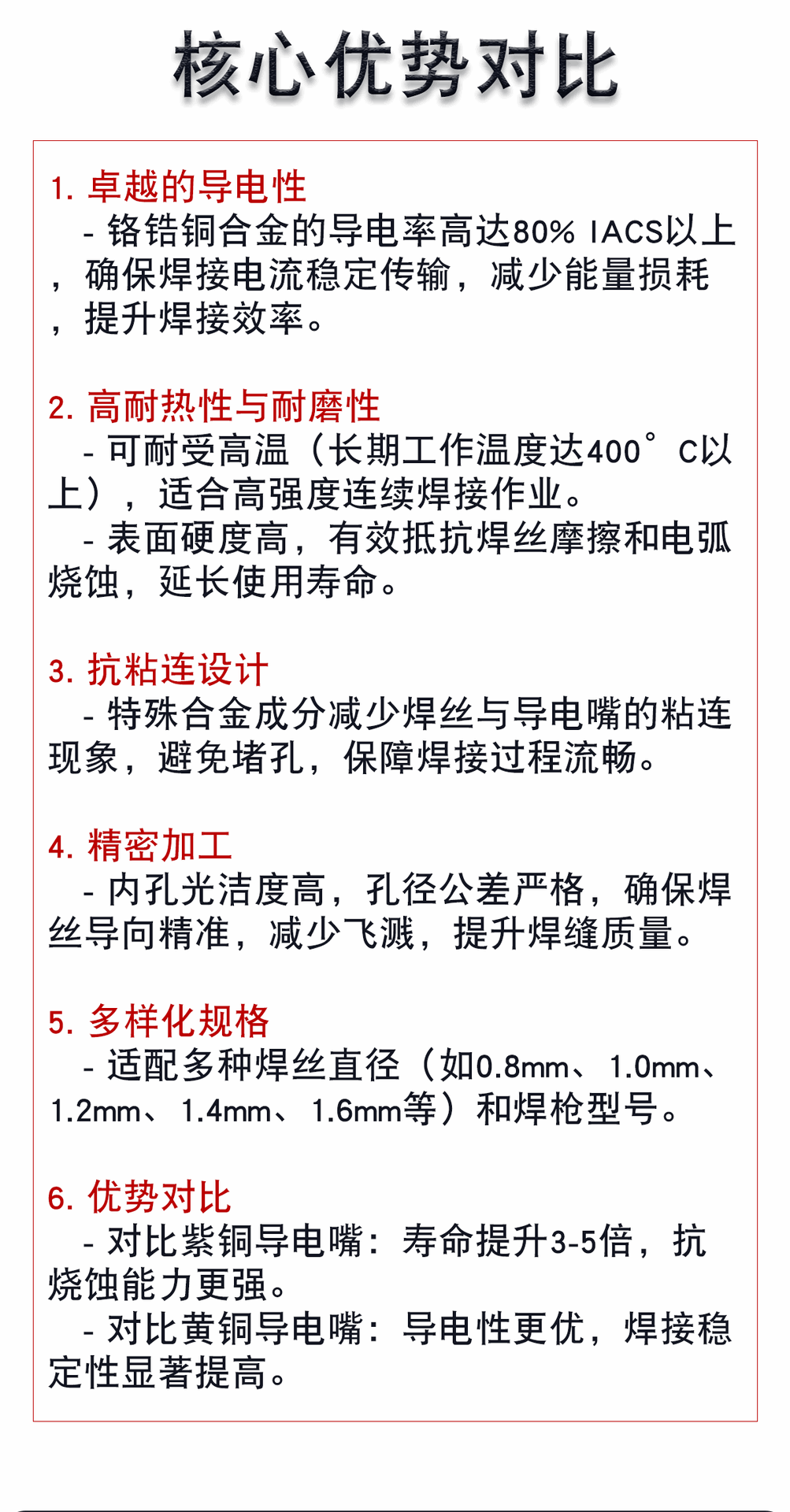 Направляющая сопла из хромированной циркониевой меди, высокоизносостойкая проводящая насадка, сварочные принадлежности для роботов, сварка MIG, антиклейкая проводящая насадка
