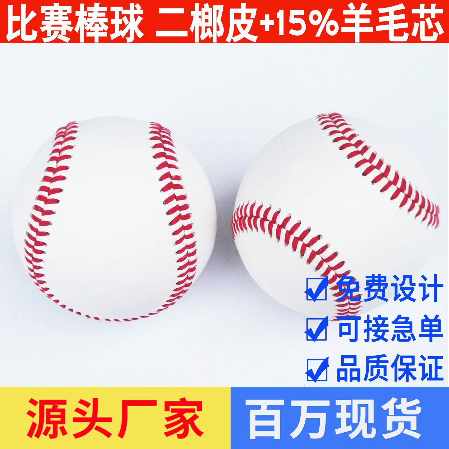 Бейсбольный мяч оптом от производителя: кожа Эрланг, содержание шерсти 9inch%, пробковый сердечник, ручная сшивка, из воловьей кожи.