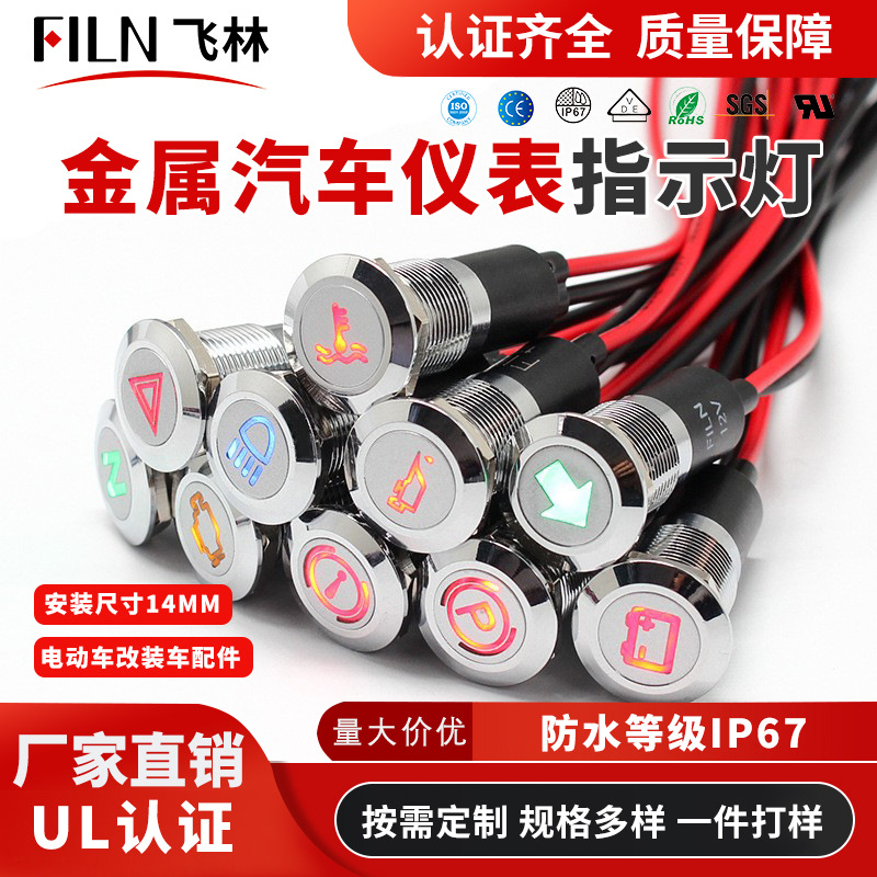 14 мм металлический автомобиль инструмент свет электрический автомобиль модифицированный автомобиль сигнальный свет новой энергии автомобиль инструмент свет серебро