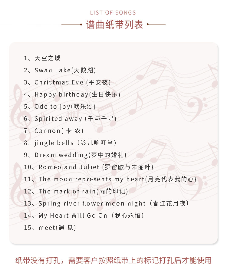 Feige 30-тонная бумажная лента с ручным запуском музыкальная шкатулка DIY музыкальная шкатулка специальная бумажная лента DIY пустая музыкальная лента