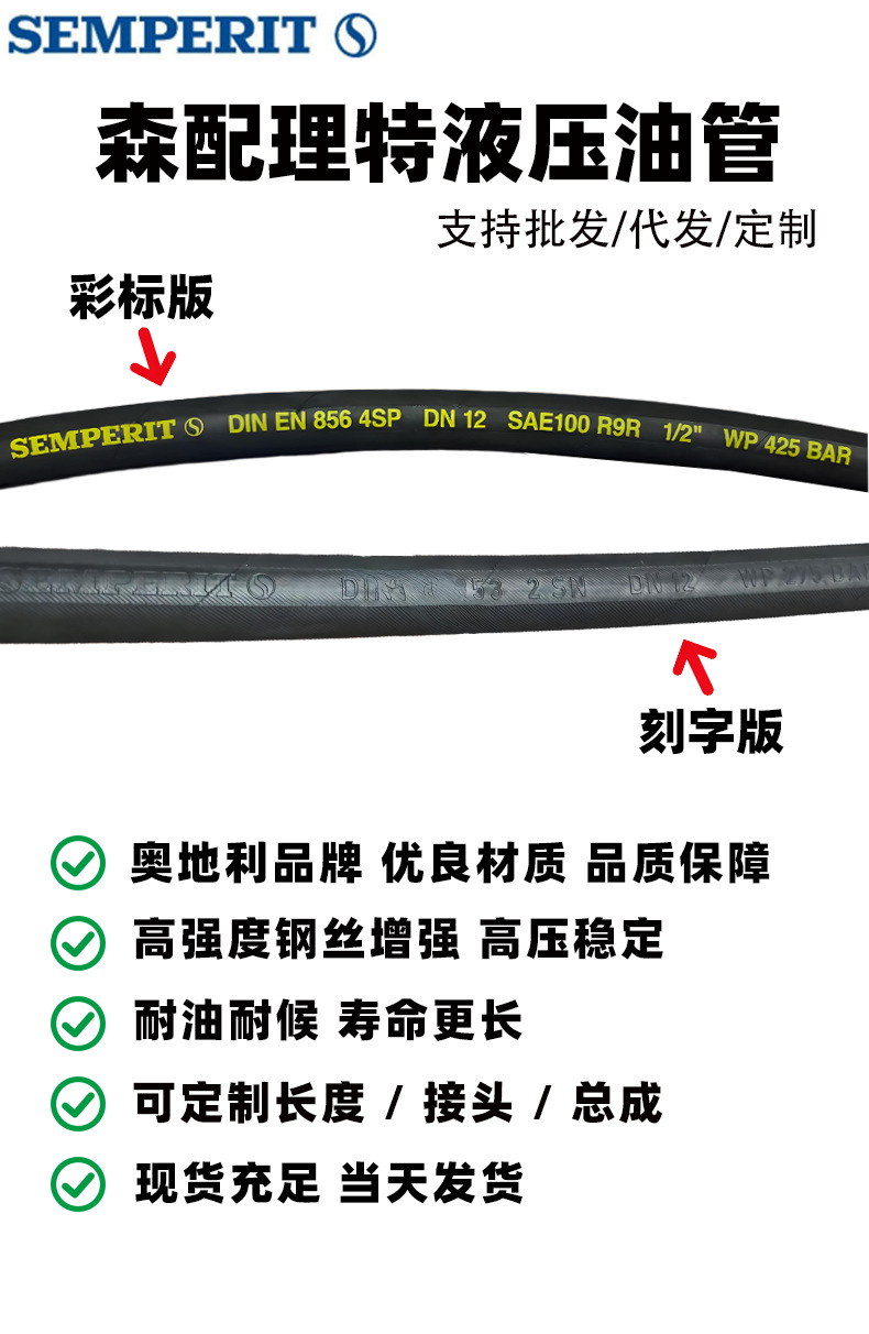 Гидравлический шланг Semperit высокого давления со стальной оплеткой, резиновый маслопровод для строительной техники