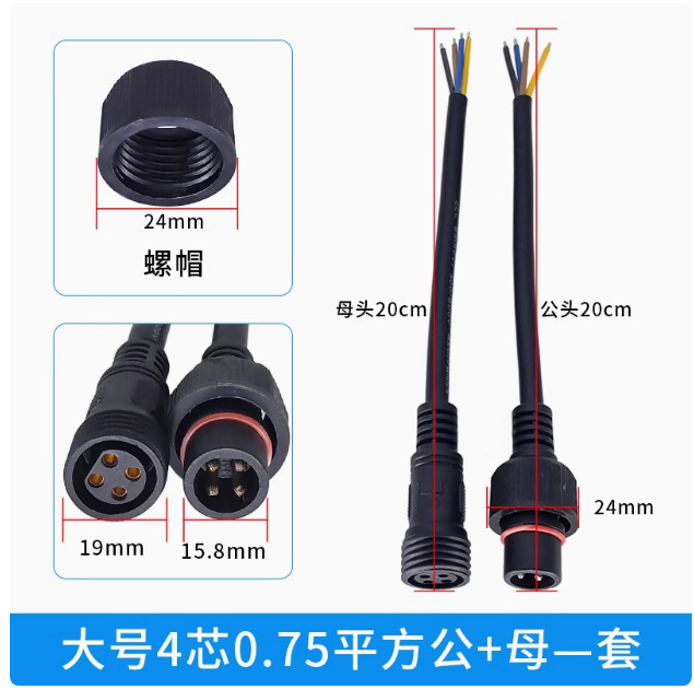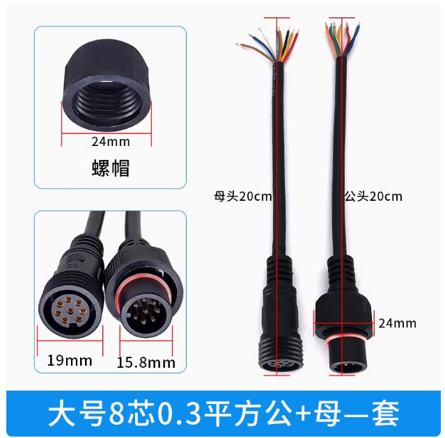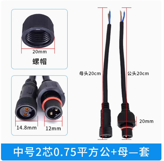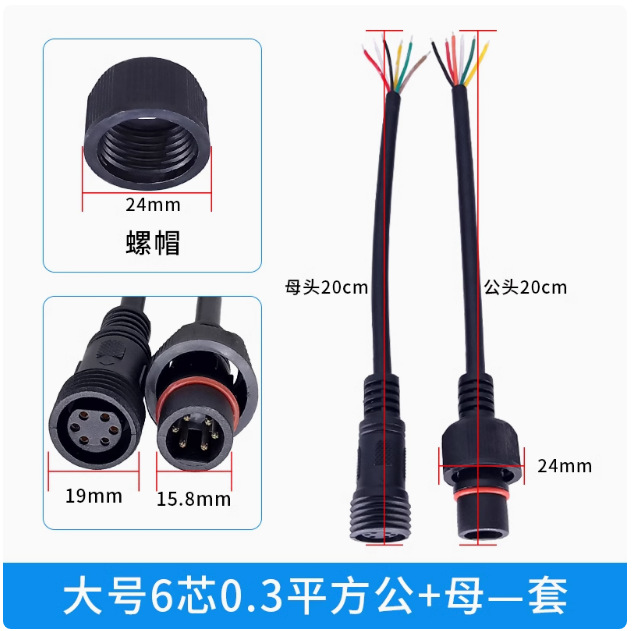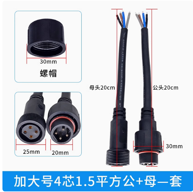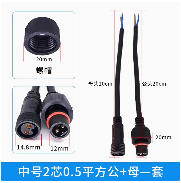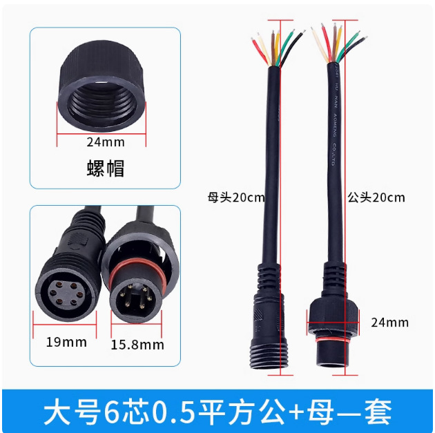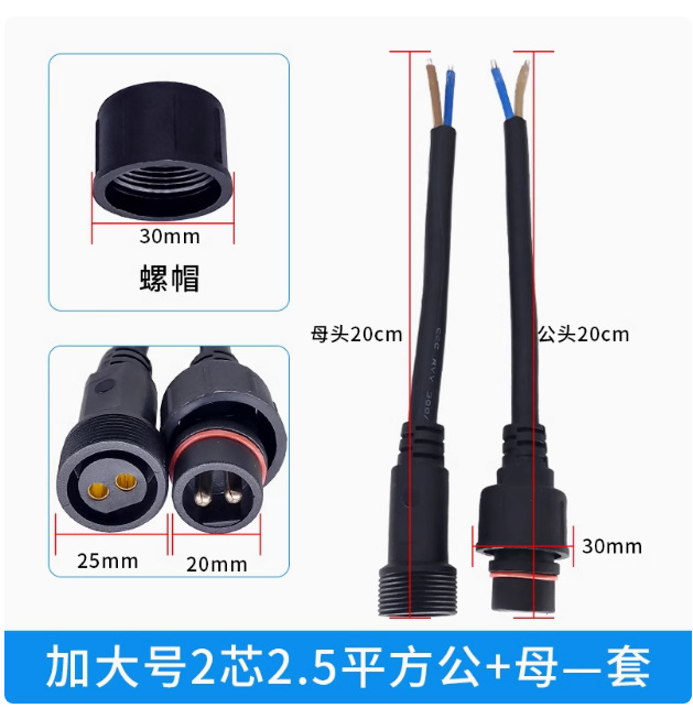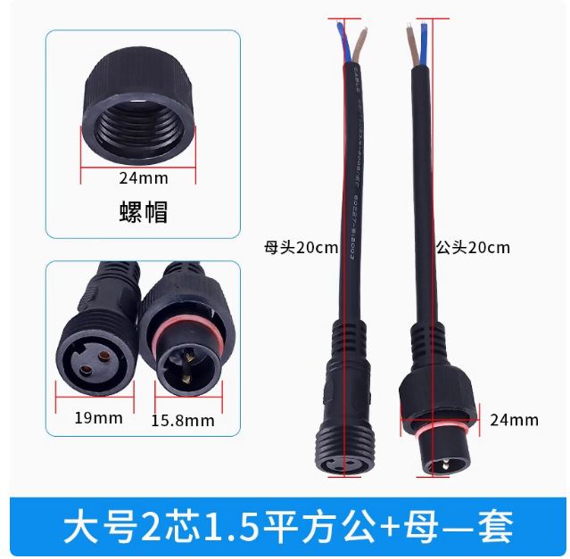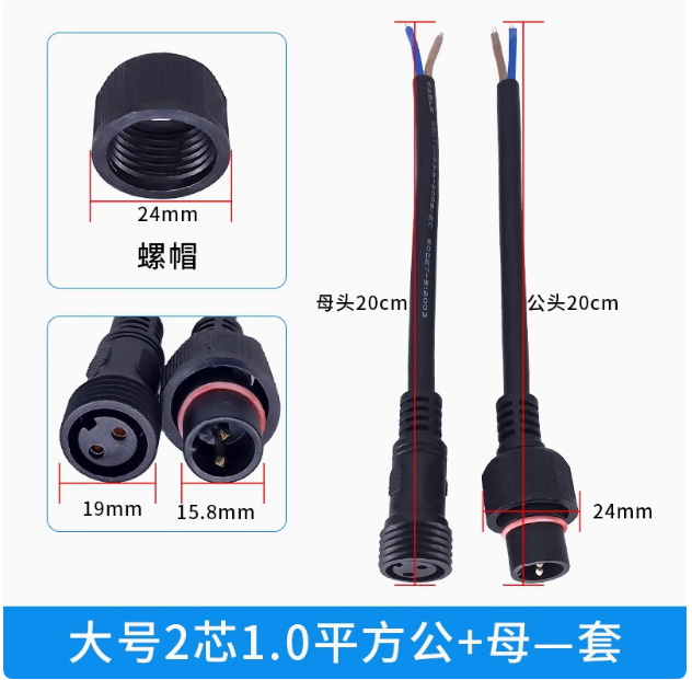 本标价为公母一对的价格,配备防水胶垫和锁紧螺母,能拍下的常规规格有现货,默认公母各200mm,公母整套对接总长40cm,一套起订,其他长度请根据数量和规格具体洽谈定制。