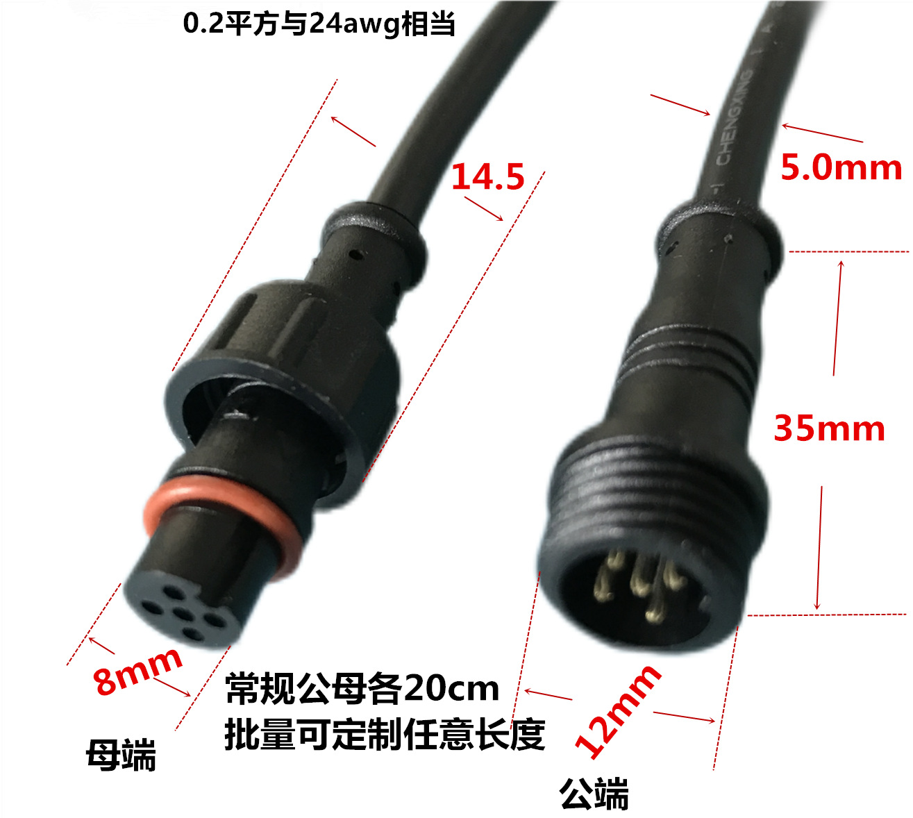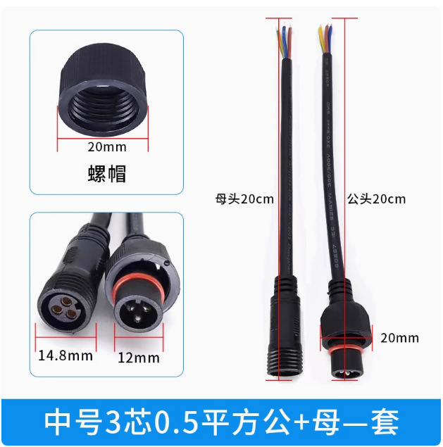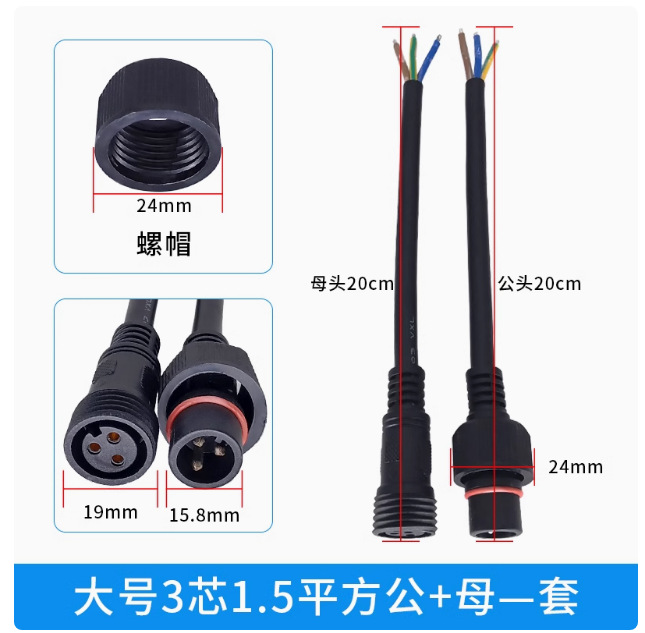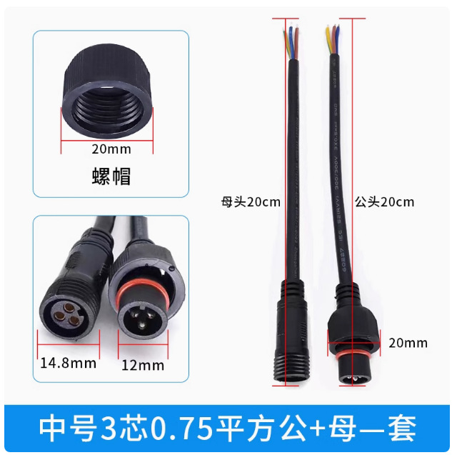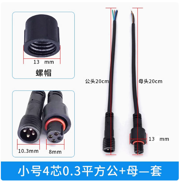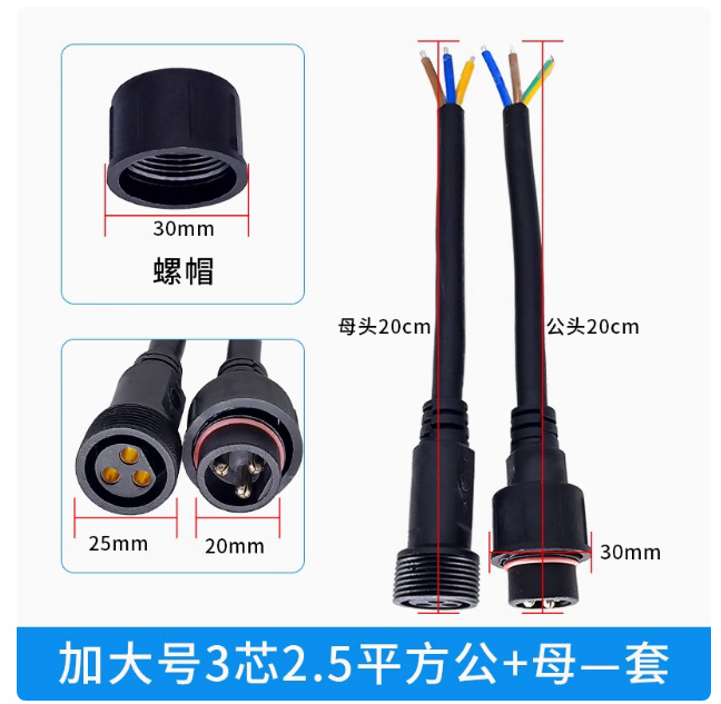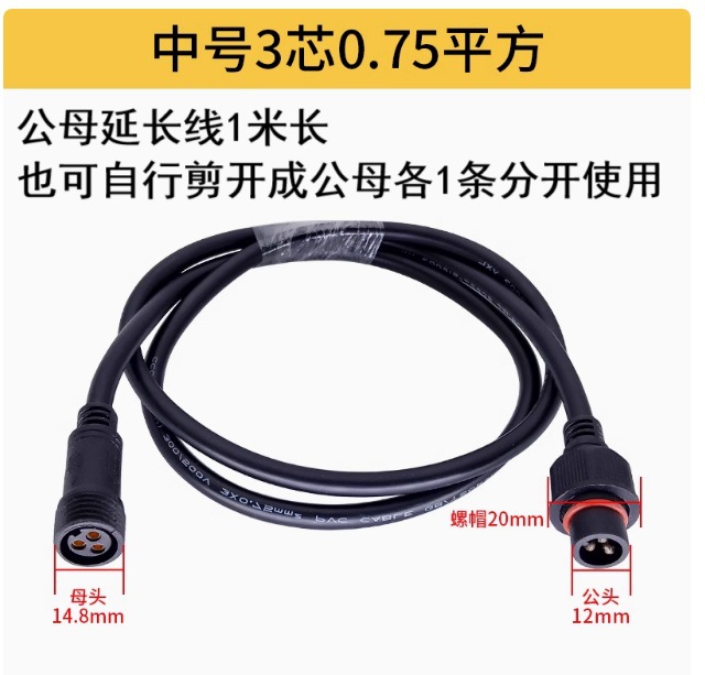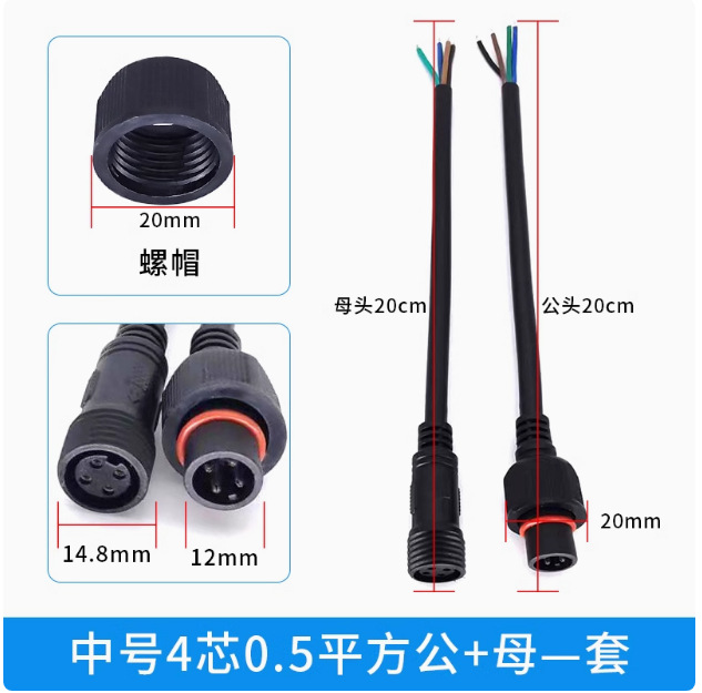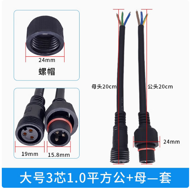 本标价为公母一对的价格,配备防水胶垫和锁紧螺母,能拍下的常规规格有现货,默认公母各200mm,公母整套对接总长40cm,一套起订,其他长度请根据数量和规格具体洽谈定制。