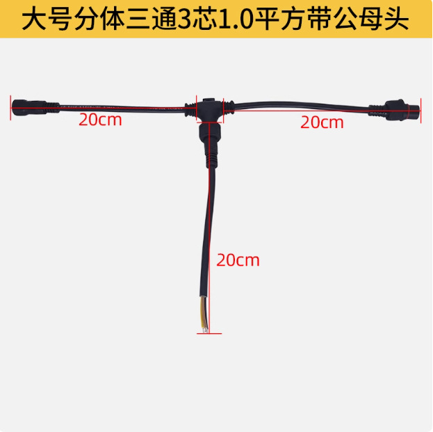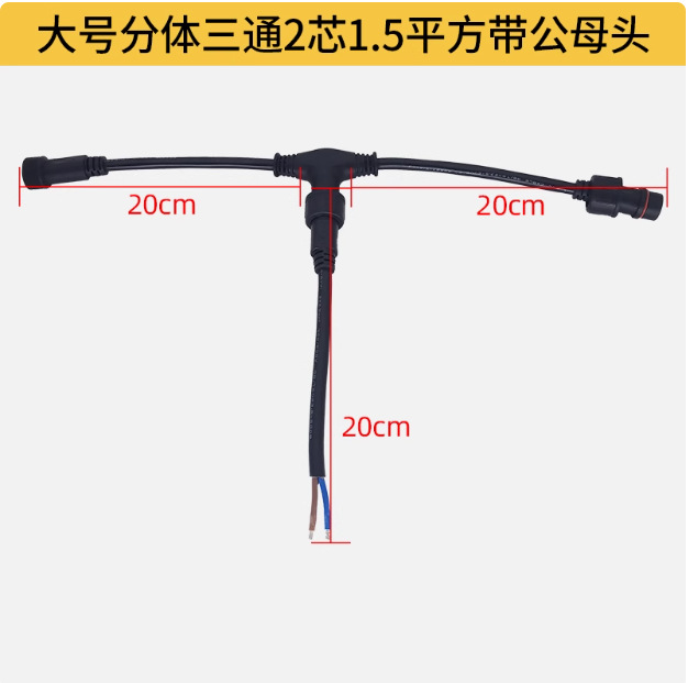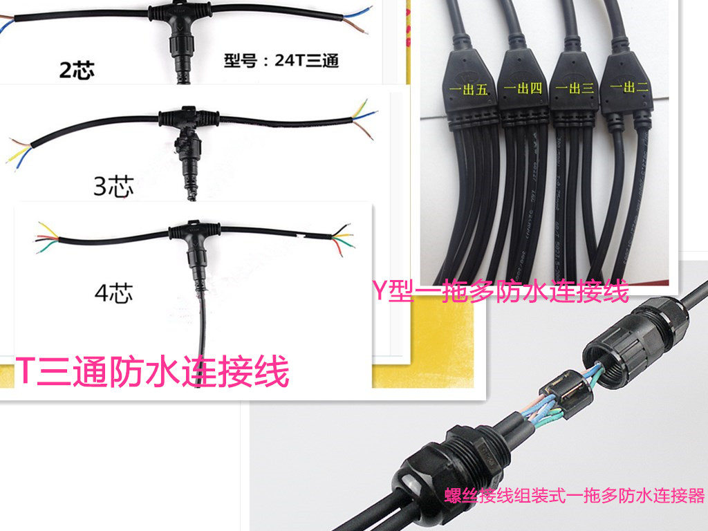 1.产品形式:线材与接头注塑一体,公母对插,带锁紧螺母和防水胶垫