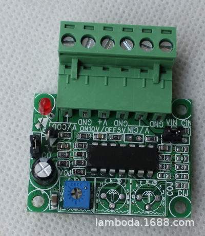 6..电流输出信号内阻可调,0-5V信号输入时,输出电流内阻在100欧姆-183欧姆间可调。0-10V信号输入时,输出电流内阻在167欧姆-687.5欧姆间可调。接收电流的负载内阻,不能过大,计算匹配公式为。模块电源输入电压*80%除以20MA,得出的数再减去模块最小内阻.例如:24V供电时,0-10V输入,最大的负载内阻为24V*0.8=19.2,19.2/0.02A=960,960-167=793欧姆。这样0-5V输入时,最大的输出负载电阻为960-100=860欧姆。本模块输出的电流与其他功能电路匹配时,相关的电路输入最大内阻不能大于上面计算出来的数字。
