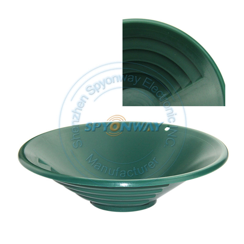 淘金盆的特征: 90°花纹设计,确保安全。在潮湿和干燥的条件下快速回收金属,淘金盆的重量是轻量级的,方便筛选,颜色为绿色可增强金块的可见度。