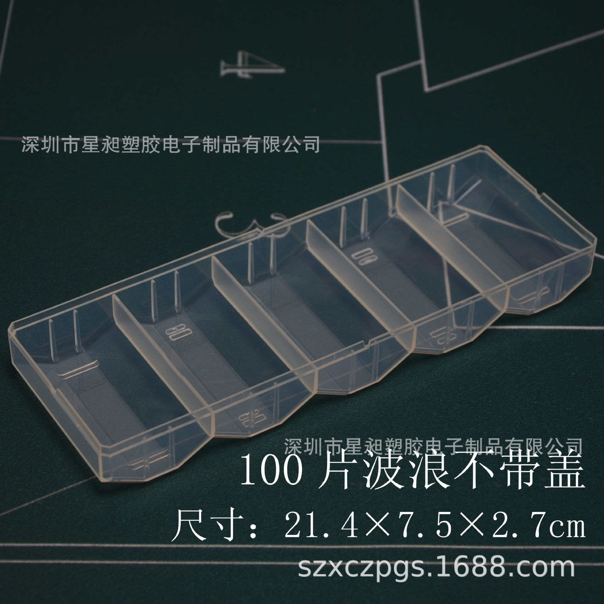 100片方形塑料筹码架也可装36片方形筹码(『方形规格』:7.4m×4.46m×0.4cm):