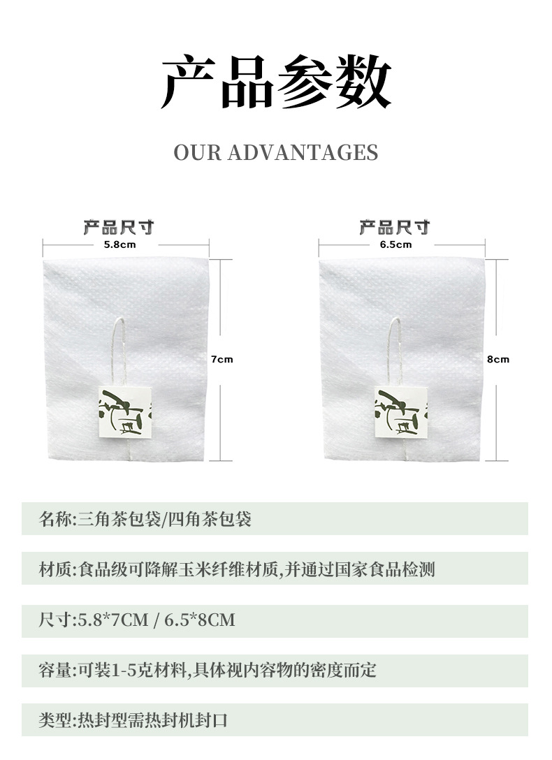 Завод питания кукурузы волокна PLA разлагаемые треугольник мешок Четыре угловой мешок пустой Мешок Ароматизированные чай порошок мешок чай пакетик