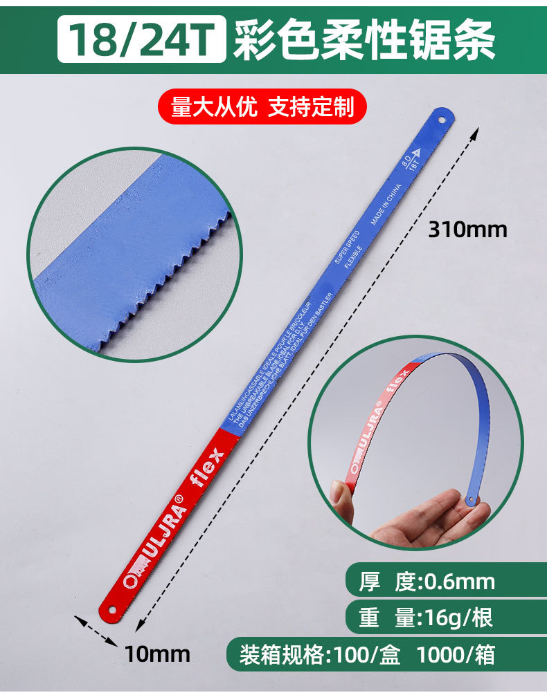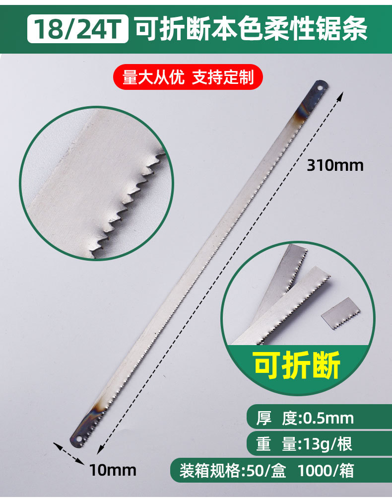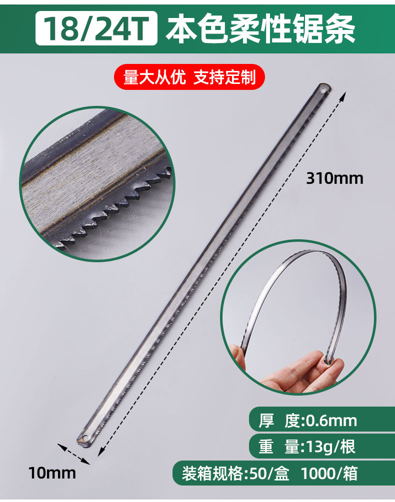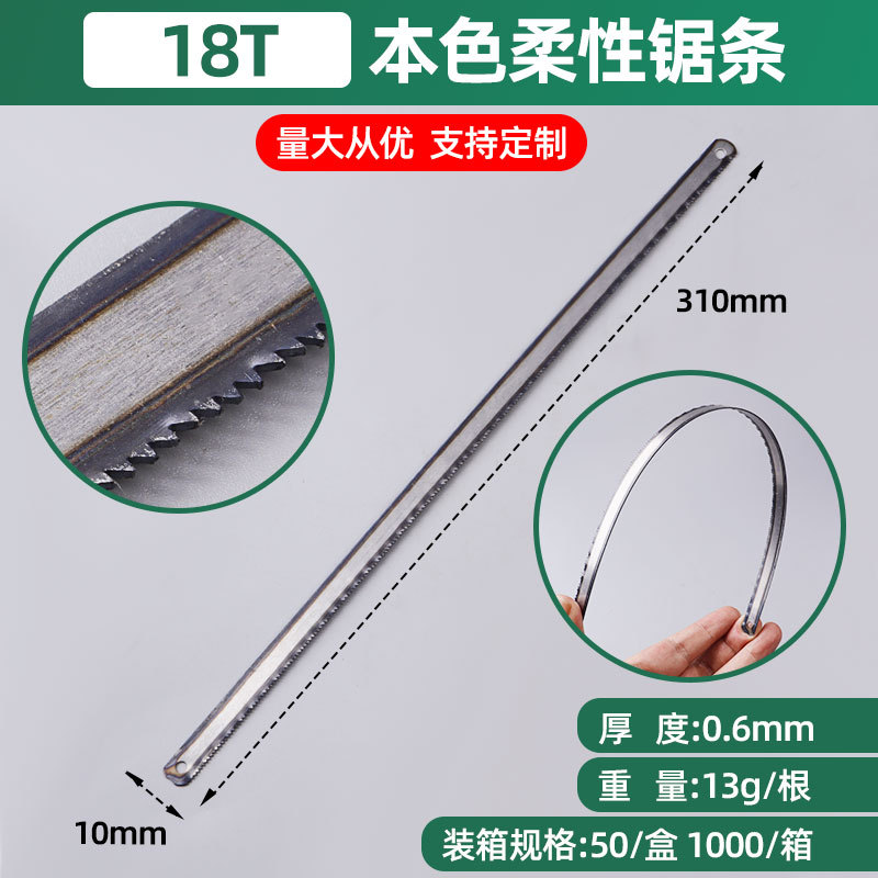 636, 18 зуб., натуральное гибкое пильное полотно, 50/кор., 1000/шт., 0,013 кг.; 637, цветное гибкое пильное полотно 18 зуб., 100/кор. 1000/шт., 0,016 кг; 638, ломкое гибкое пильное полотно 18 зуб., 50/коробка, 1000/шт., 0,013 кг; 639, 24 зуб. натуральное гибкое пильное полотно, 50/кор. 1000/шт., 0,013 кг; 640, цветное гибкое пильное полотно 24 зуб., 100/кор. 1000/шт., 0,016 кг; 641, 24T, ломкое натуральное гибкое пильное полотно, 50/коробка, 1000/шт., 0,013 кг; 642, пильное полотно с двусторонним зубом, 72/коробка, 720/шт., 0,023 кг