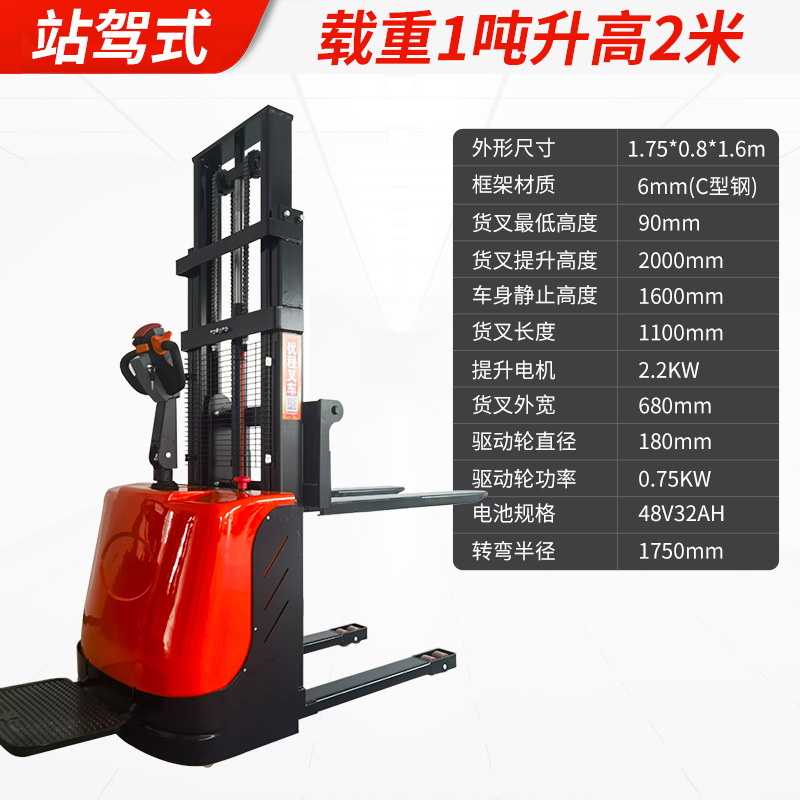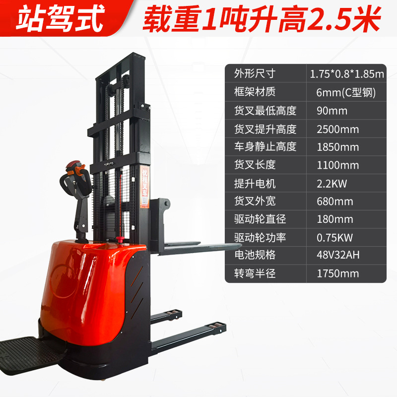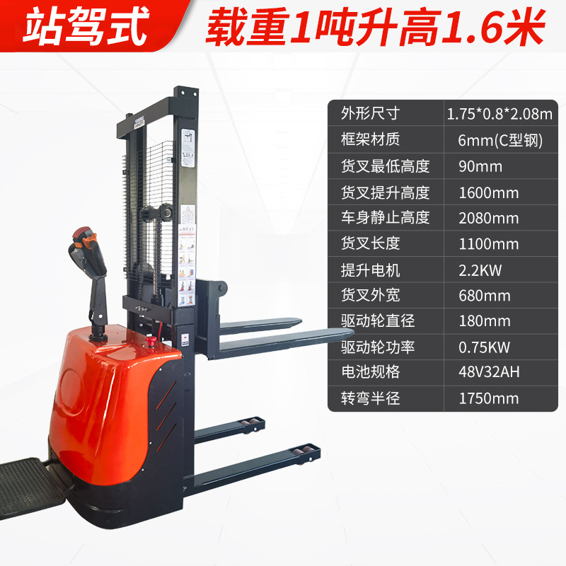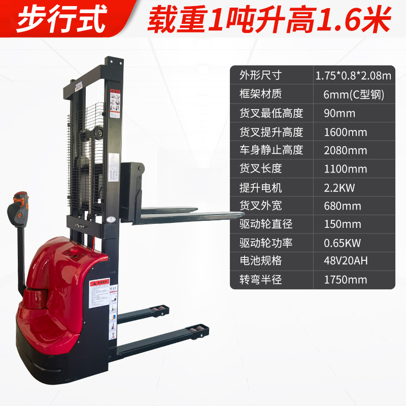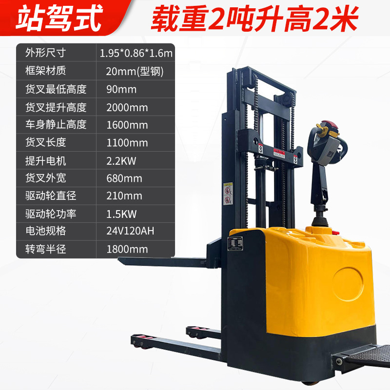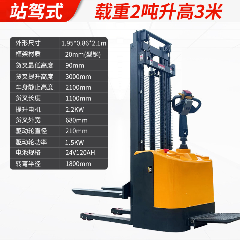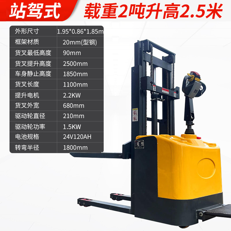 Электрический штабелер грузоподъемностью 1,5 тонны, полностью электрический, с гидравлическим подъемом, для погрузки и разгрузки, с двумя аккумуляторами.